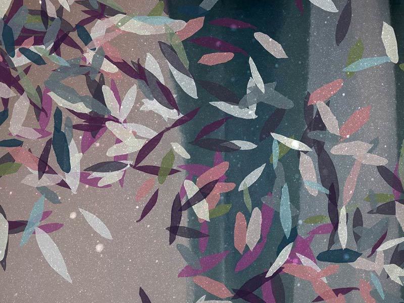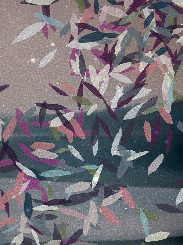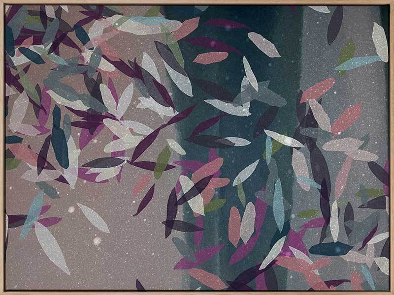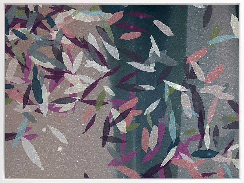 Summer Rain Canvas Art Print: A beautifully textured artwork, featuring falling leaves in a soft mauve colour palette, with pops of teal, purple and white. 2018 SPRING/SUMMER COLLECTION: REMINISCE