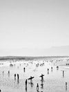 Summer Wave I - A relaxed photographic image featuring people walking, swimming and carrying surfboards on the beach.