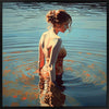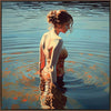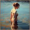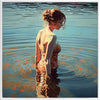 Sundrenched Afternoons Canvas Art Print - This stunning coastal wall art will instantly breathe life into your space with a graphic-inspired art style using flat colours and shadowy contrasts. With the sun's rays reflecting her bright orange swimsuit, this moody piece will remind you of warm ocean swims at sunset while on holiday, bringing a calm, relaxed energy to your home. Palette includes blue, orange, brown, and beige tones.
