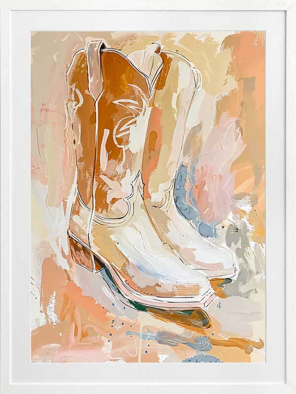 Utilising warm sepia tones, soft peach pastels, and painterly designs the Wild & Fearless art collection captures the rugged charm and adventurous spirit of the dusty western cowboy and cowgirl in every brush stroke.