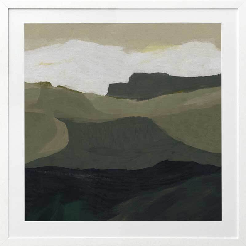 Surrey Framed Art Print - These dark bold colours make a modern statement and is perfect for any wall space. Features shades of moss green, olive green, beige and white.