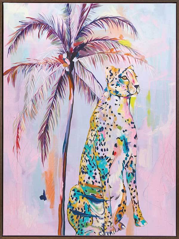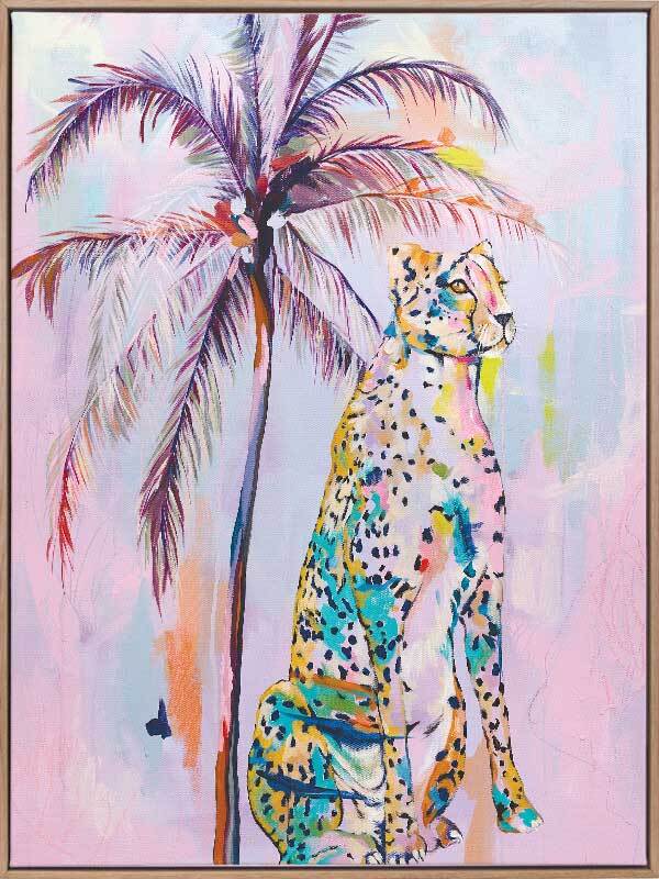 Self-taught artist Heylie Morris brings her dynamic collection of animals and female figures to Urban Road, focusing on the playfulness of Australian cockatoos and other native birds, as well as the majestic, powerful beauty of tigers, leopards and jaguars. This collection uses unique blends of colours and shapes, focusing on graphic brush strokes, detailed designs, and impactful colour palettes. Her rendition of the Australian Black Cockatoo is a particular standout, with beautifully detailed imagery and rich, vibrant colours.