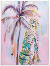 Take Me Away Canvas Art Print - Captured in a moment of peace, a leopard sits proudly, chest out, taking shade underneath a nearby tree. An abstract take on nature's own, this artwork uses a soft pastel palette of blues, pinks, yellows and oranges to juxtapose the brute strength and power of this mysterious jungle-goer.