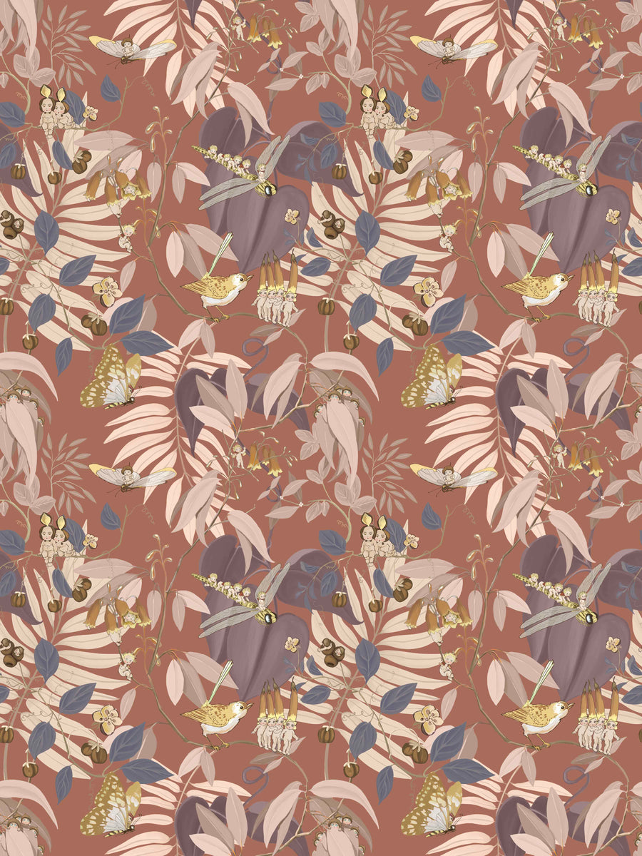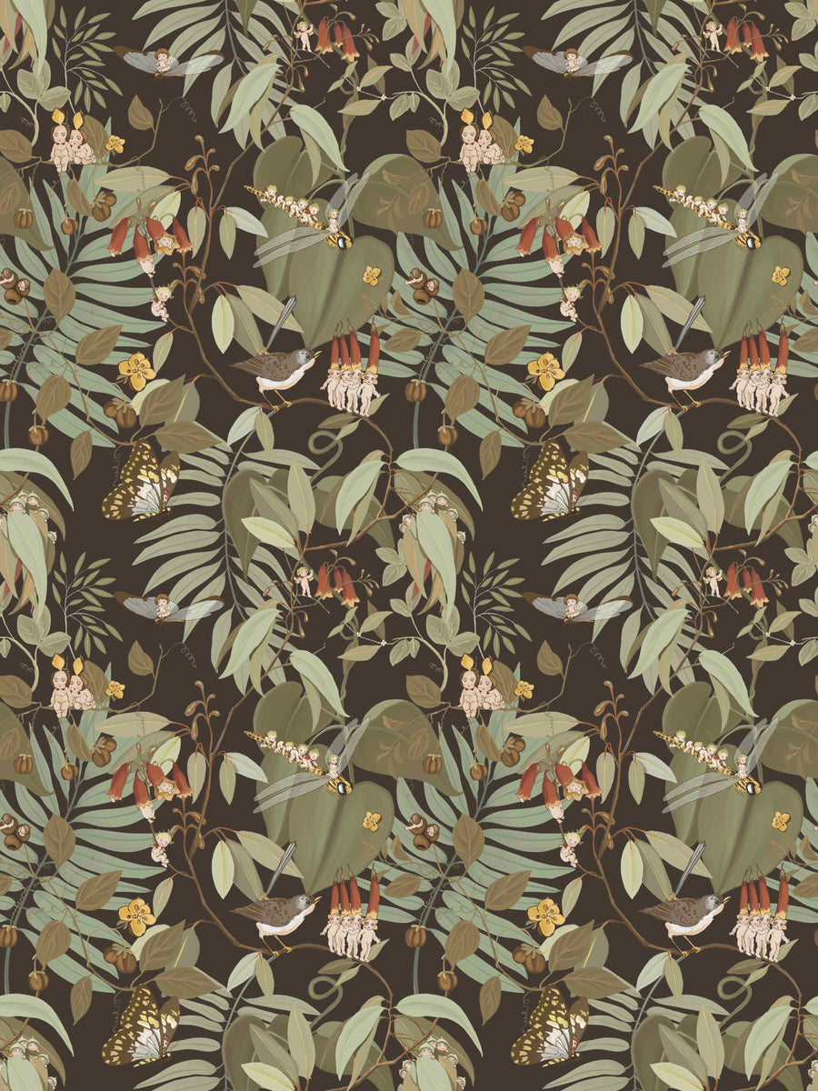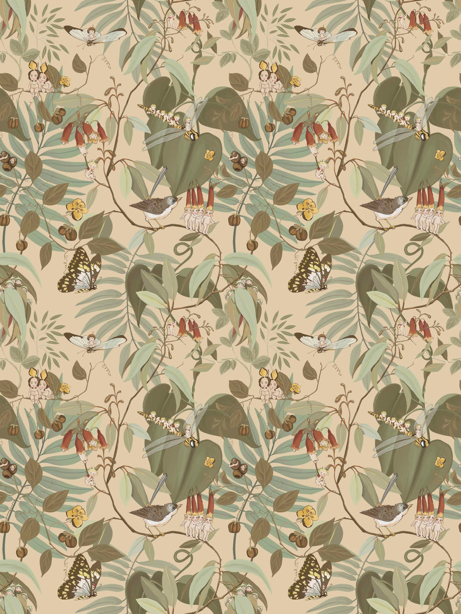 Ideal as a children’s wallpaper in Australia, it offers a magical touch for bedroom wallpaper or a charming, nature-inspired statement in any space. With its artful details, this wallpaper adds depth, warmth, and a playful connection to Australia’s cultural heritage, making it the perfect choice for interiors that embrace storytelling and whimsical charm.