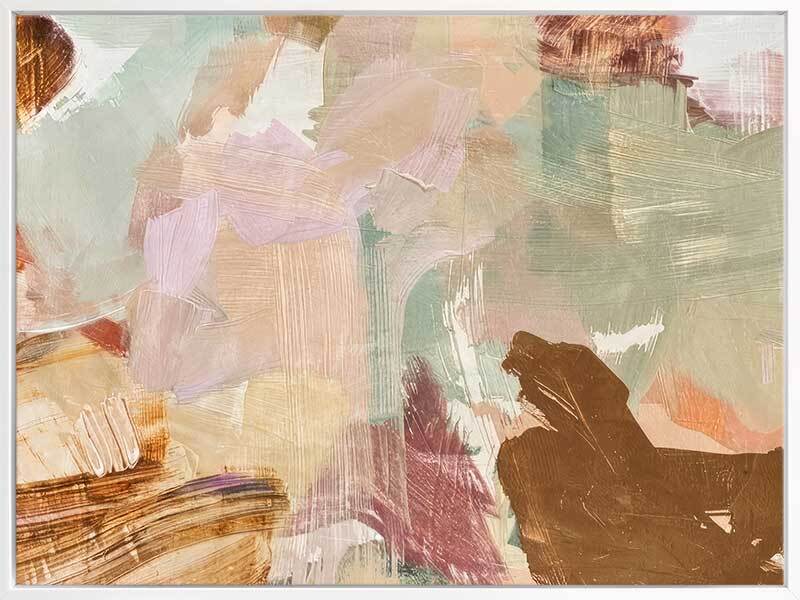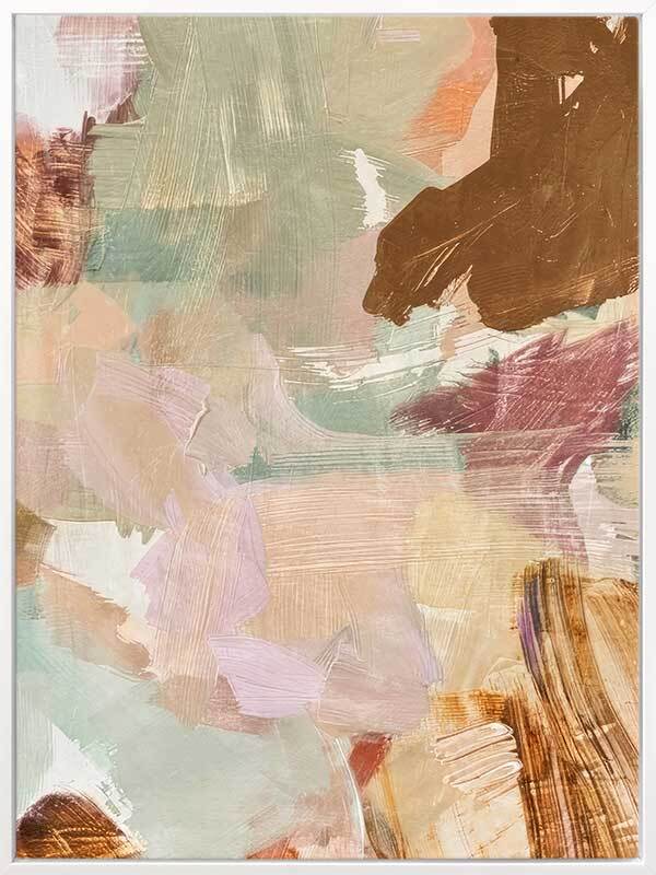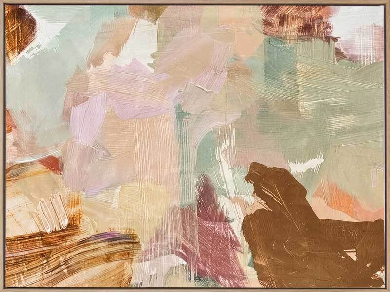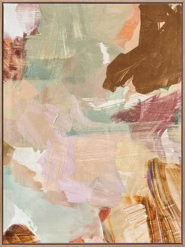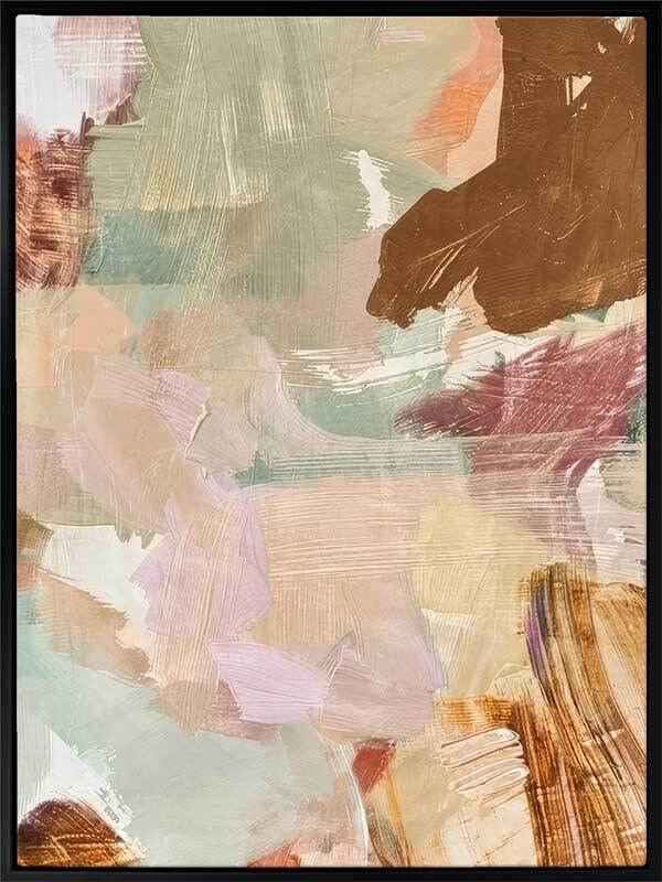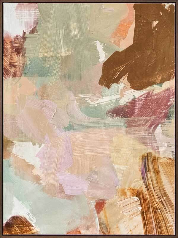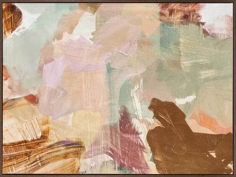 Terraform II Canvas Art Print - Having fun with form and shape, this adventurous abstract artwork brings a layered energy to any space, making a special impact as oversized abstract wall art for your living room or bedroom. Palette includes brown, beige, pink, and pale green.