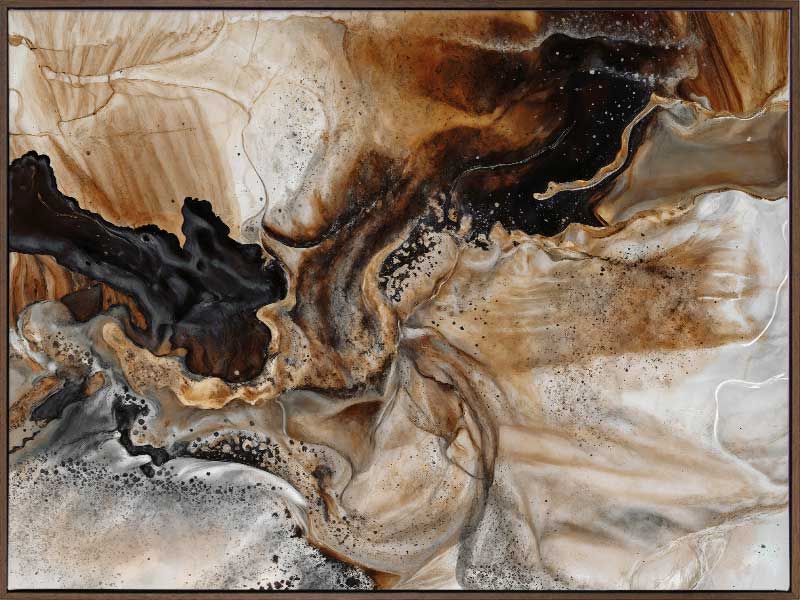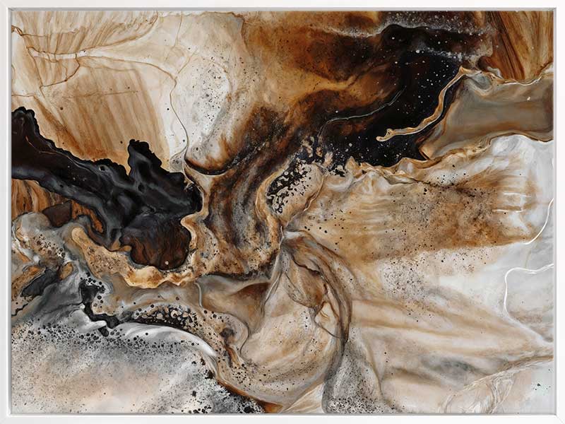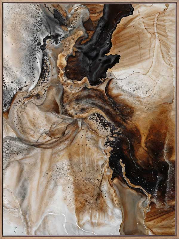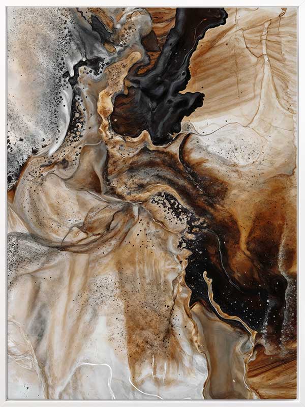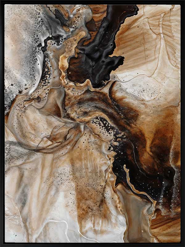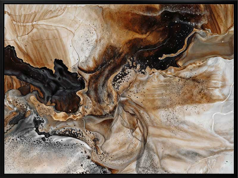 Terrain Tides II Canvas Art Print - A vision of movement and calm, this abstract art print captures the ebb and flow of earthy tidal waves. Swirling with rich neutral tones of brown, beige, grey, and black, its fluid design mimics the beauty of nature from above - like an aerial glimpse of a dreamlike, earthen ocean. A striking yet serene addition to any modern interior, it brings a quiet rhythm to your space.