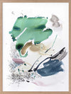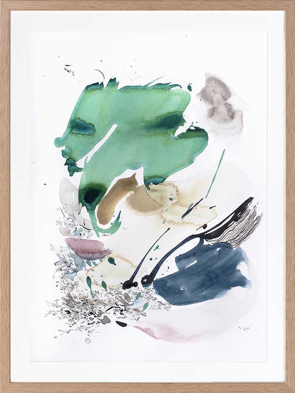 Tethered Everywhere Framed Art Print - This abstract wall art by Christina Kwan captivates with expressive brush strokes in vibrant teal, deep blue, blush, and earthy neutrals. Energetic yet balanced, this artwork captures fluid motion and creative freedom. Perfect as contemporary abstract wall art, it brings dynamic elegance and colourful sophistication to stylish modern interiors.
