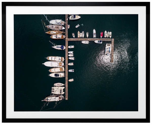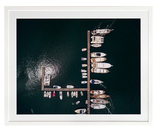 The Junction Framed Print: As the sun sets on another perfect summer's day, the boats come in to rest. Bask in the stunning natural sunlight of this luminous photographic image. 2016 SPRING/SUMMER COLLECTION: ELEMENT