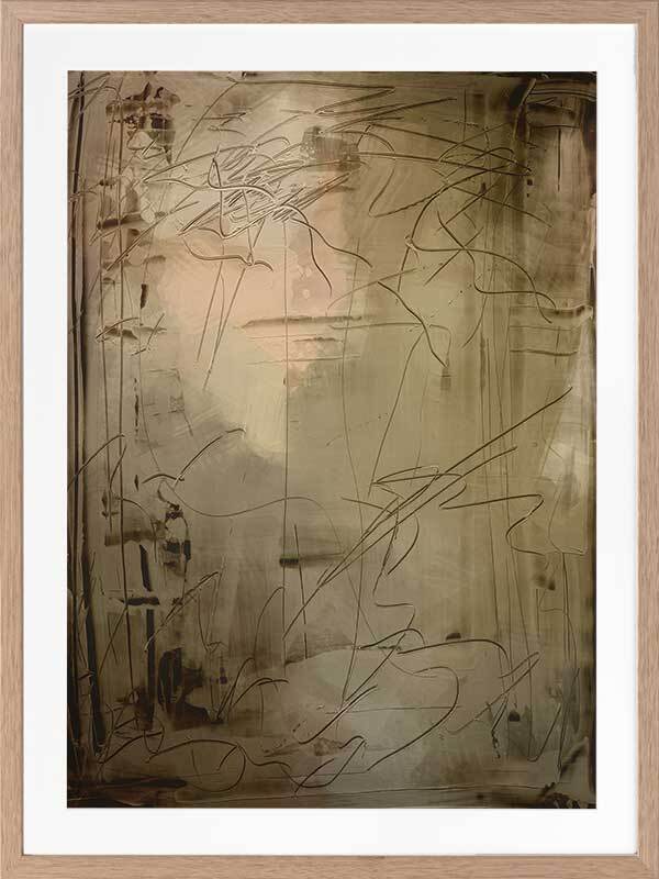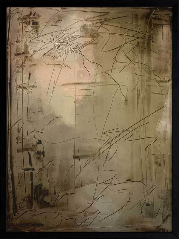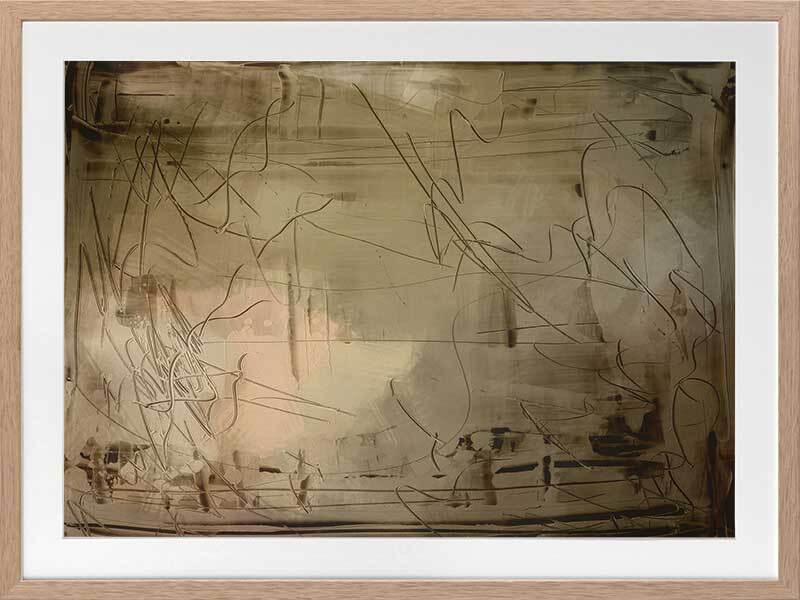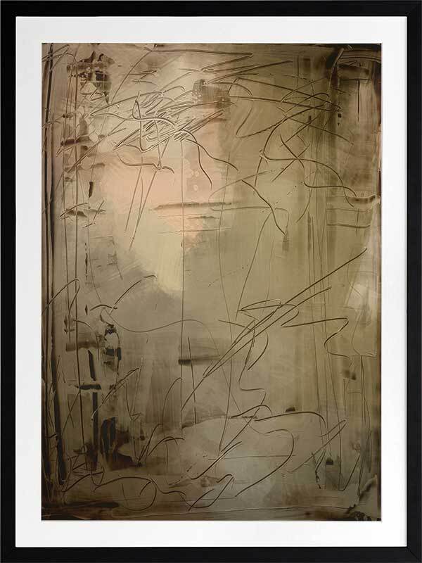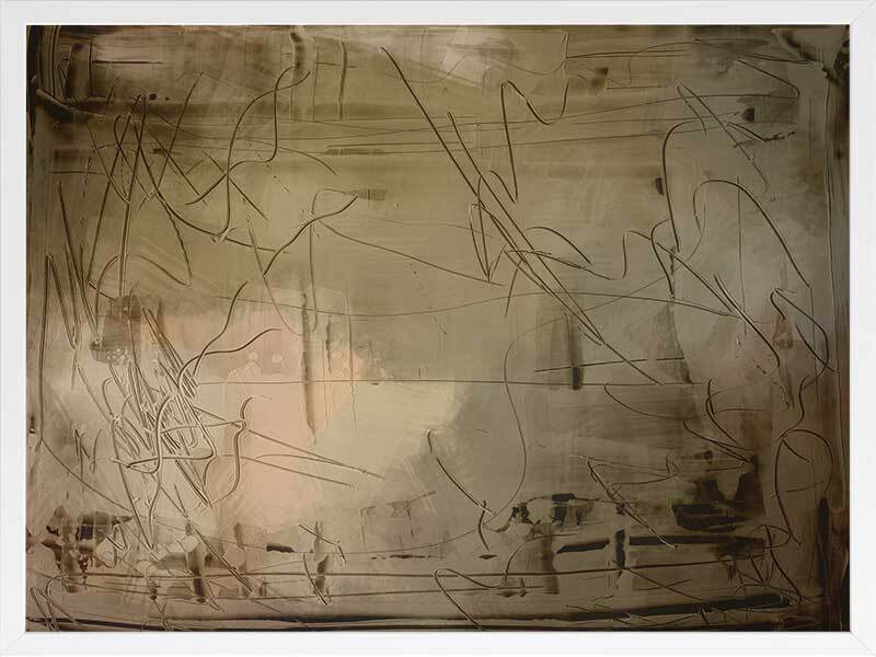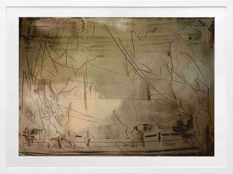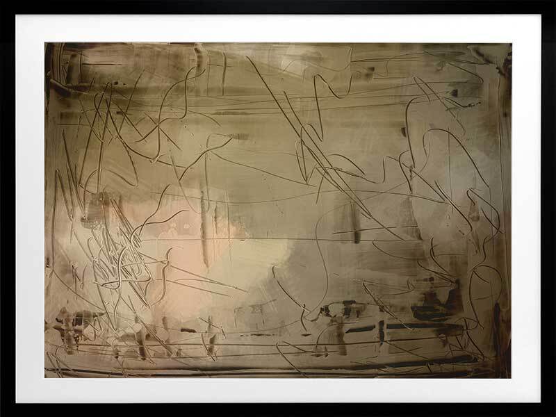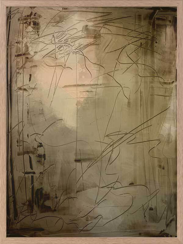 The Tranquility of Aging Framed Art Print - Create visual interest in your home with this textural abstract artwork. Featuring a messy array of lines, this piece has a neutral golden-brown palette with hints of beige.