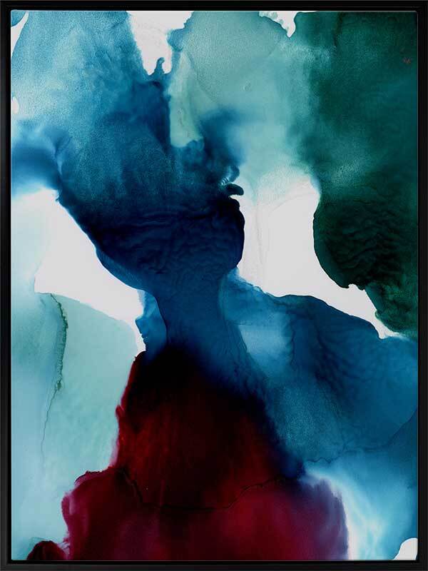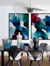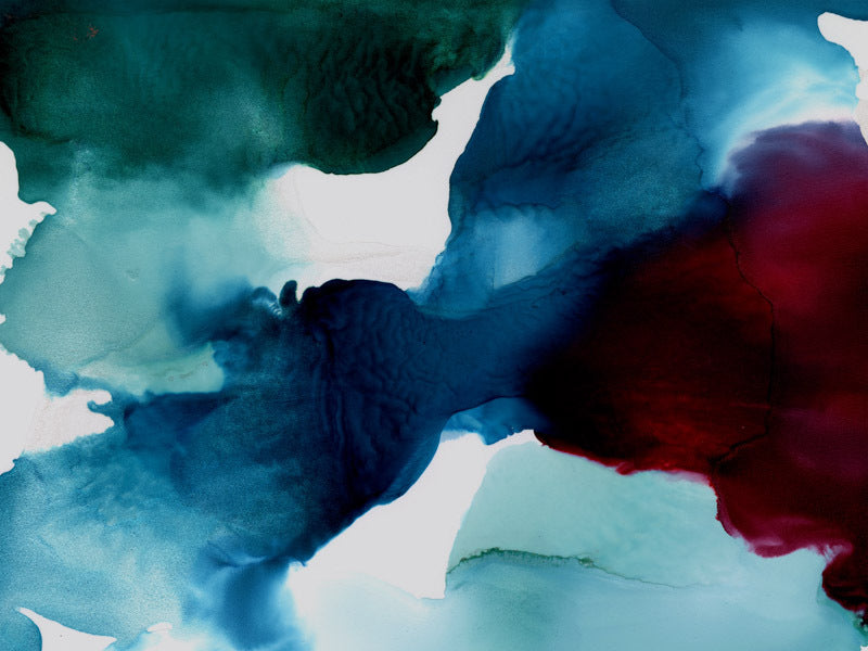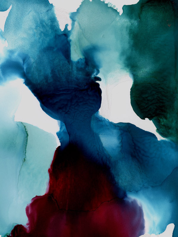 Titanic I Canvas Art Print: An artwork created with alcohol inks in a teal, blue and red colour palette. Pairs with Titanic II. 2020 AUTUMN/WINTER COLLECTION: REVERIE