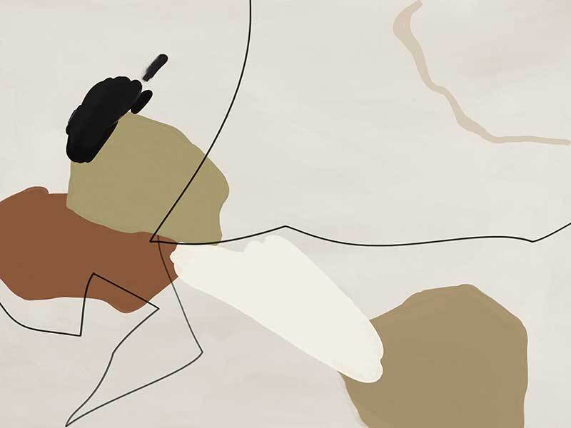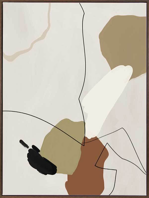 To the Wire III Canvas Art Print - Playful lines and shapes and warm, muted tones combine in this minimalistic abstract piece. Featuring a neutral yet sophisticated palette of soft beige, khaki green, and a hint of black. Matches with To the Wire I and II.