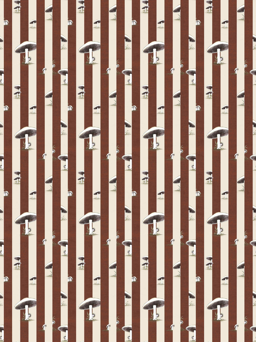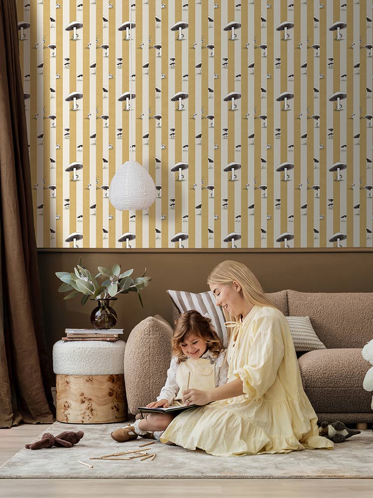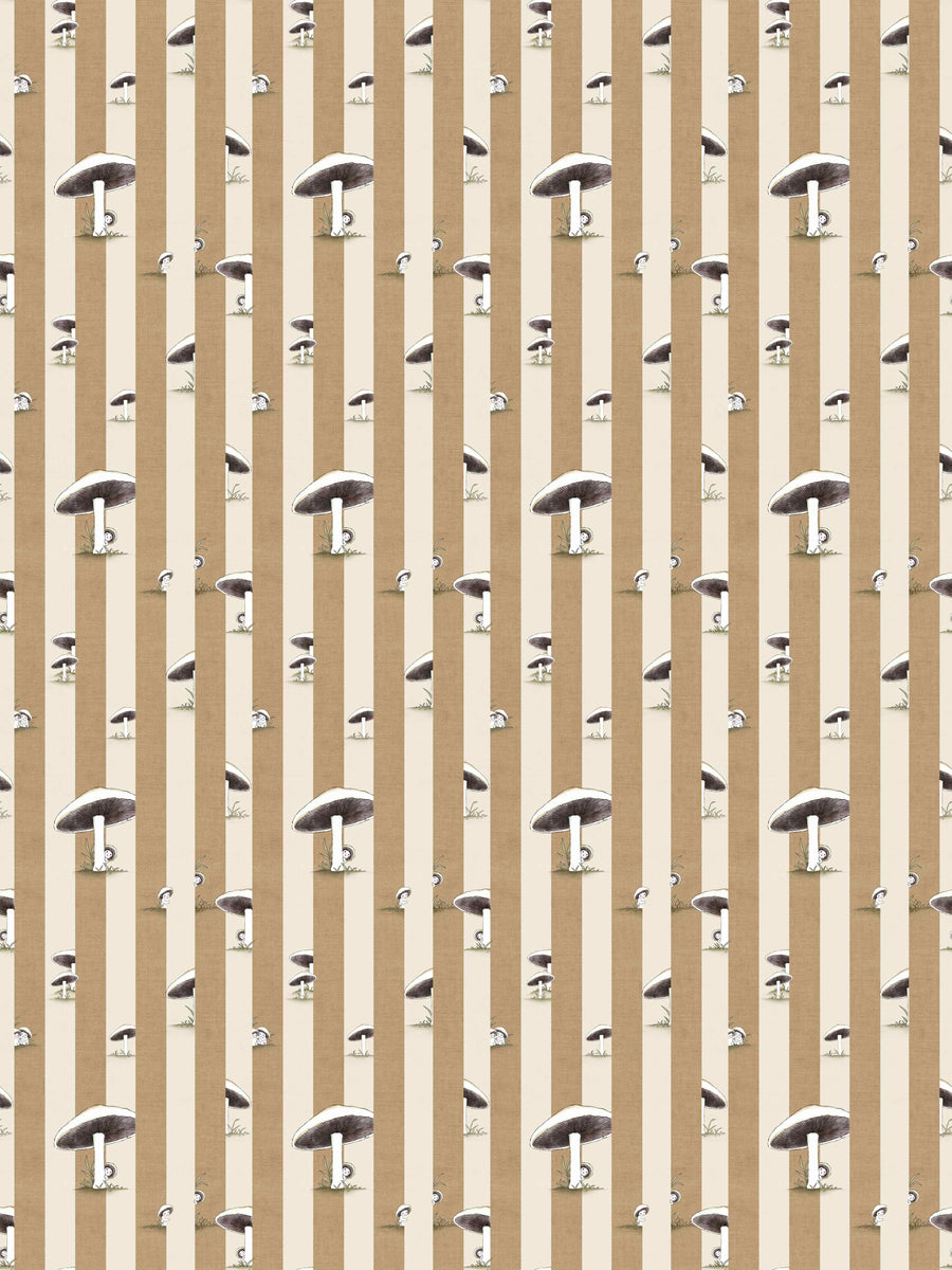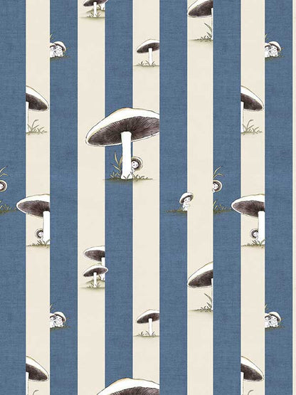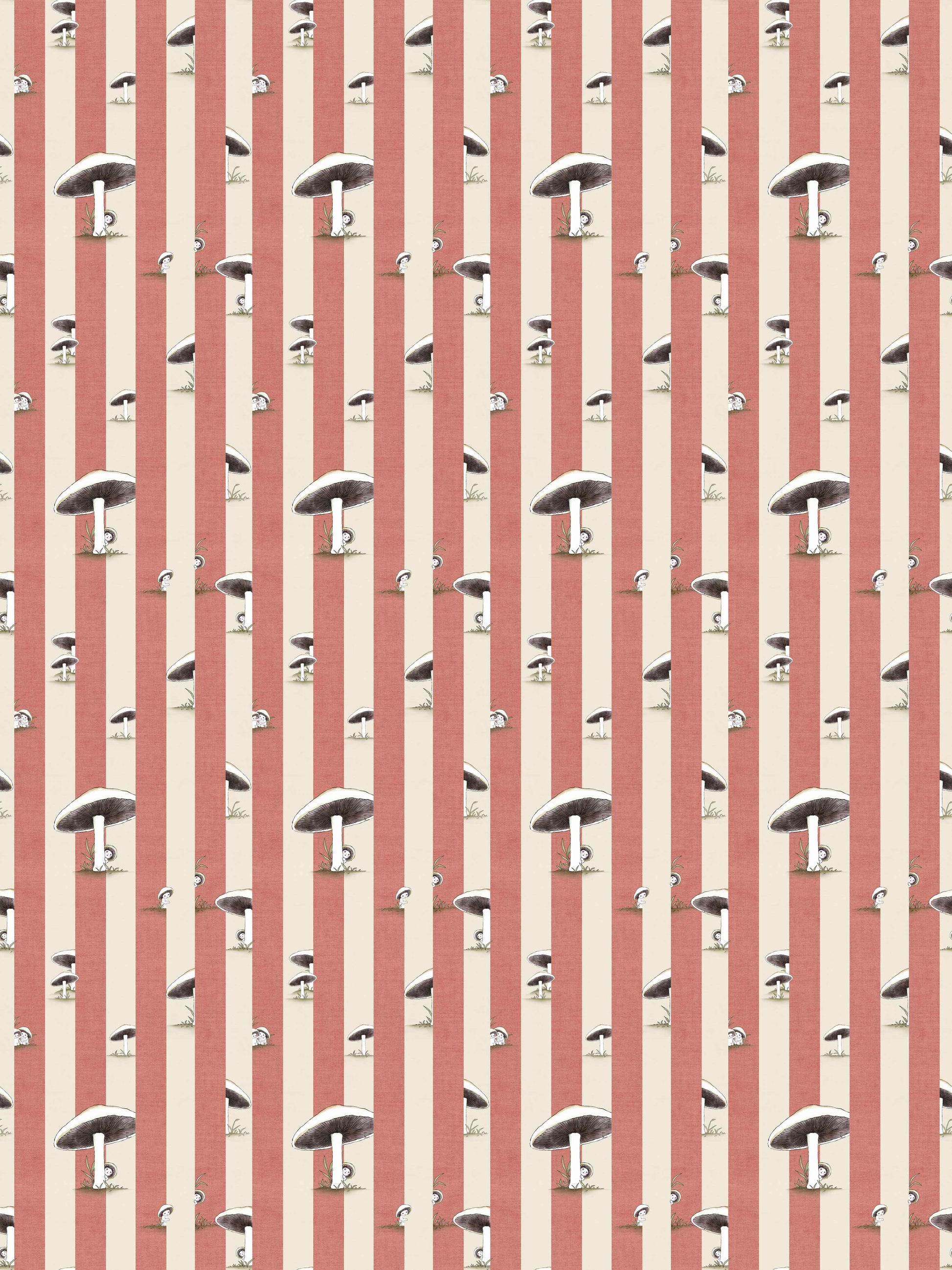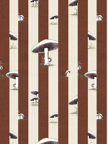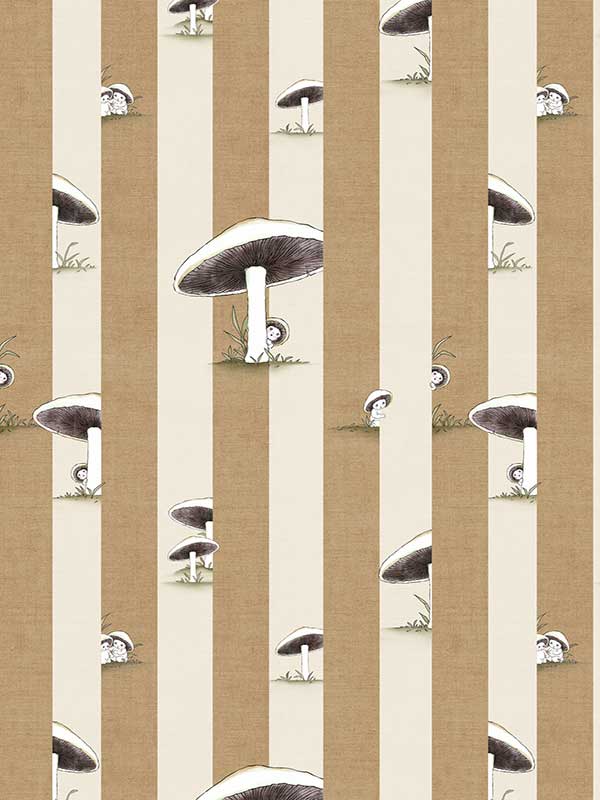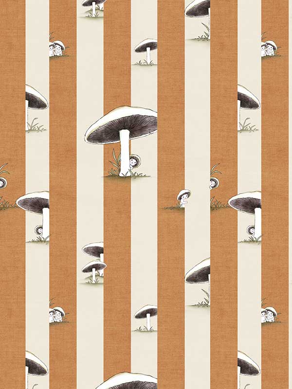 Toadstool Peakaboo Dark Wallpaper - Introduce a touch of whimsical nostalgia to any space with this Urban Road X May Gibbs Wallpaper. Featuring adorable toadstool babies nestled among soft, repeating stripes, this design draws inspiration from the timeless magic of May Gibbs illustrations.