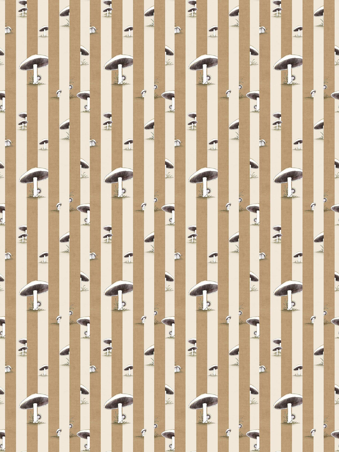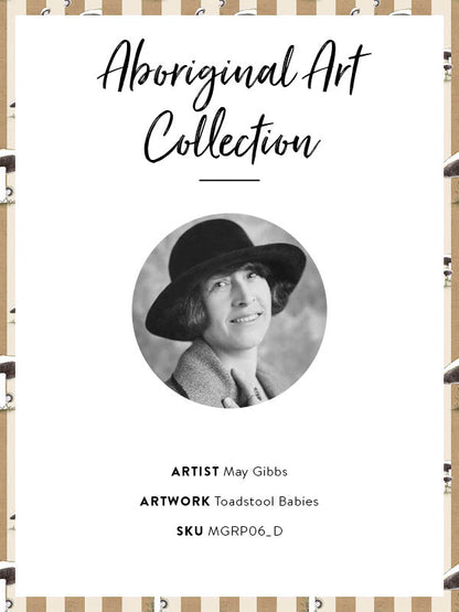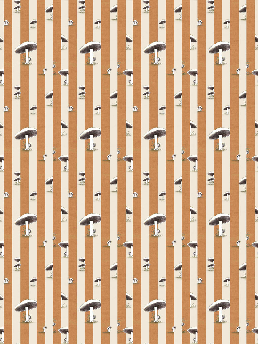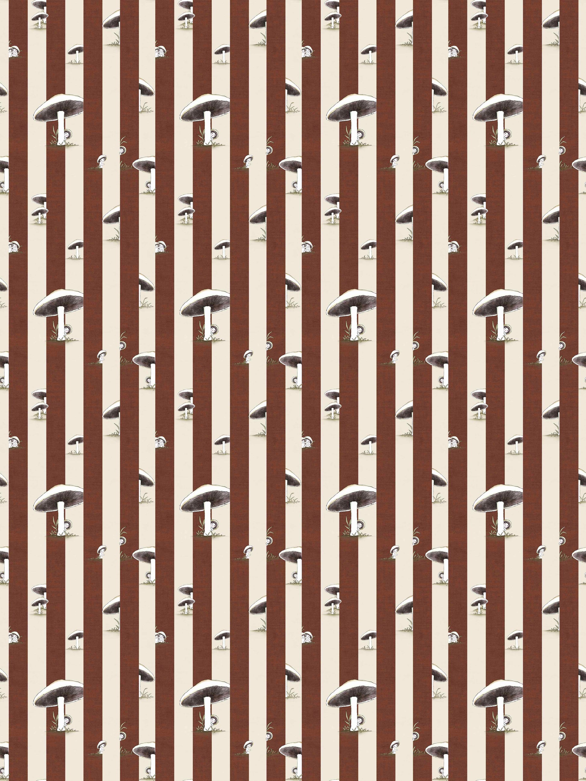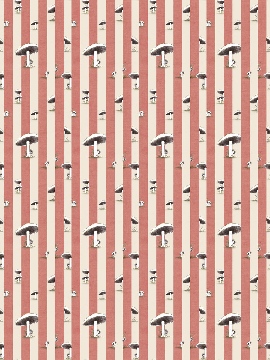 Toadstool Peakaboo Dark Wallpaper - Introduce a touch of whimsical nostalgia to any space with this Urban Road X May Gibbs Wallpaper. Featuring adorable toadstool babies nestled among soft, repeating stripes, this design draws inspiration from the timeless magic of May Gibbs illustrations.