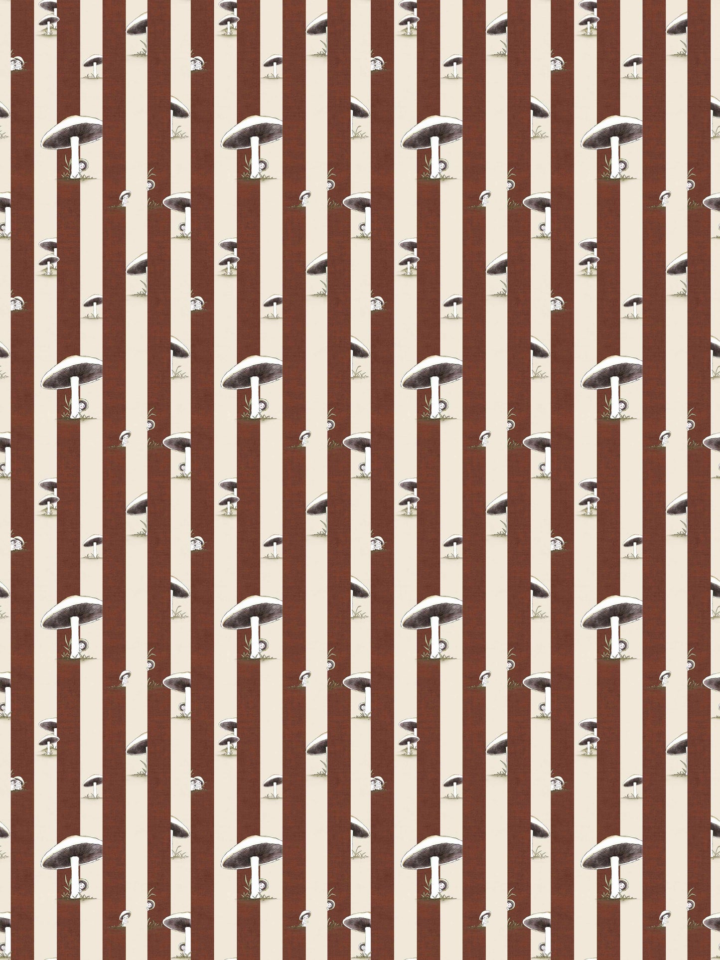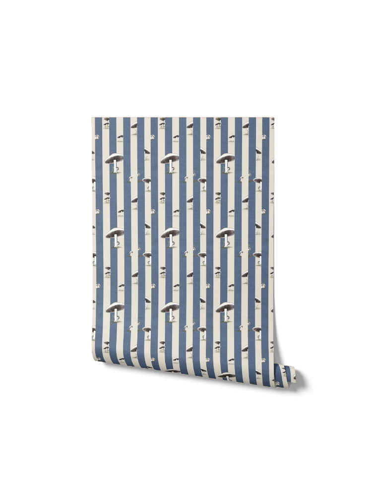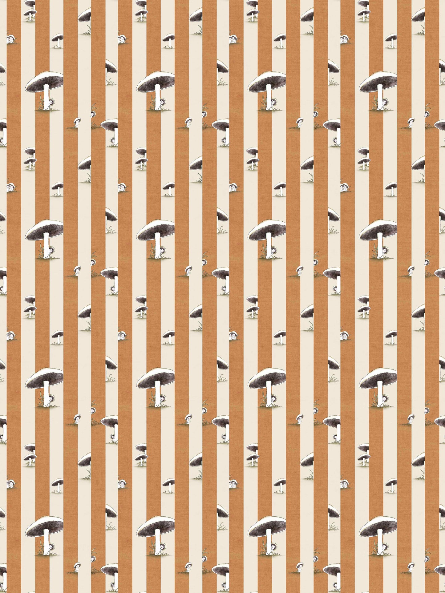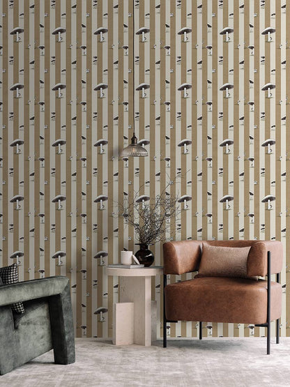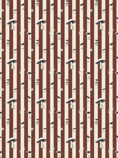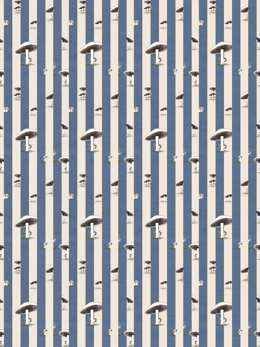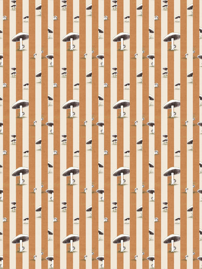 Toadstool Peakaboo Dark Wallpaper - Introduce a touch of whimsical nostalgia to any space with this Urban Road X May Gibbs Wallpaper. Featuring adorable toadstool babies nestled among soft, repeating stripes, this design draws inspiration from the timeless magic of May Gibbs illustrations.
