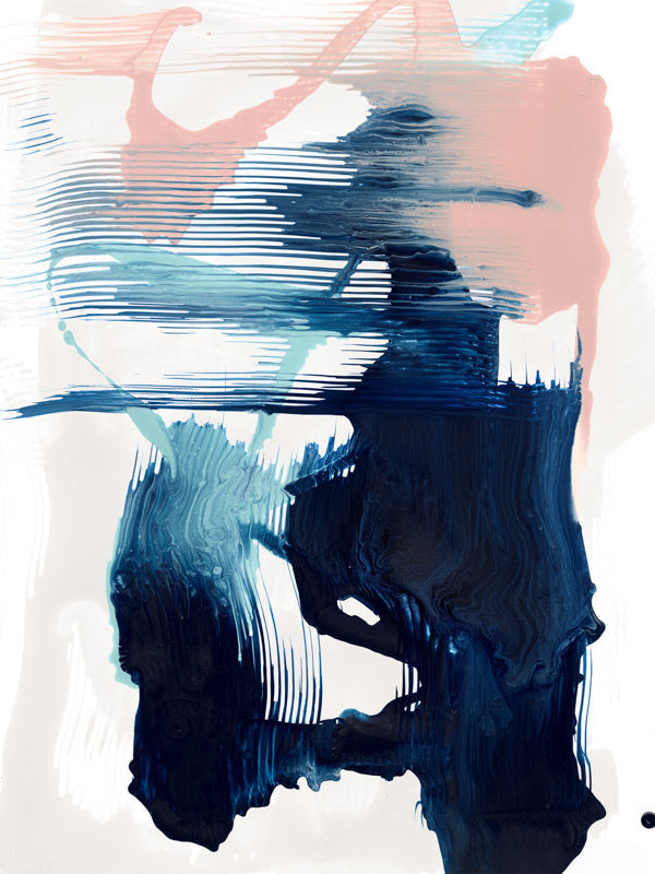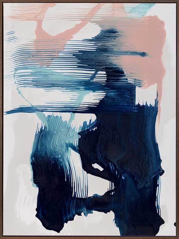 Trafalgar I Canvas Art Print: A bold abstract artwork that features textured navy blue and light pink strokes and swashes. Pairs with Trafalgar II. 2020 AUTUMN/WINTER COLLECTION: REVERIE