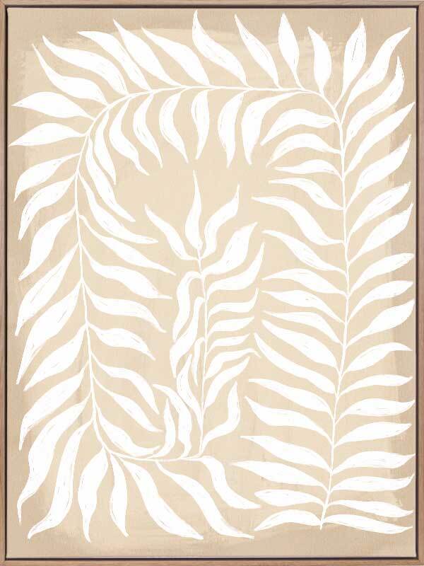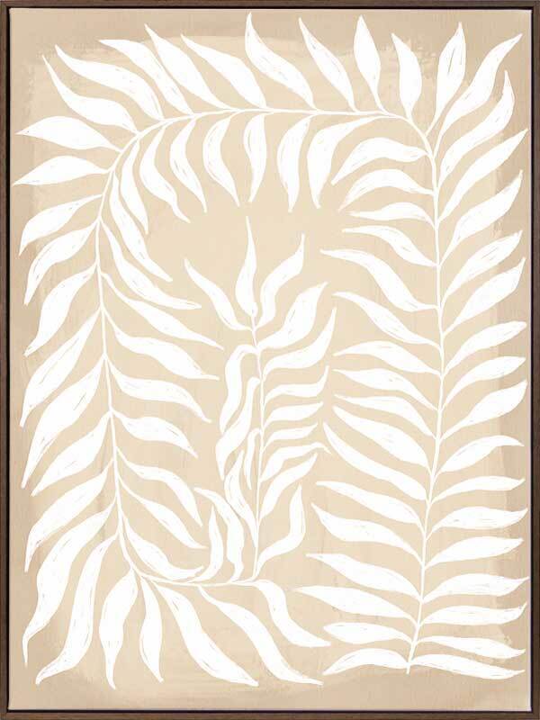 Travels Sand Canvas Art Print - A family of vines adorn the walls of every building in a small village, cascading up and down in an endless mesmerising twirl. Perfect for animating a space with movement and natural imagery, this piece works with any interior style with its neutral white and sandy beige tones.
