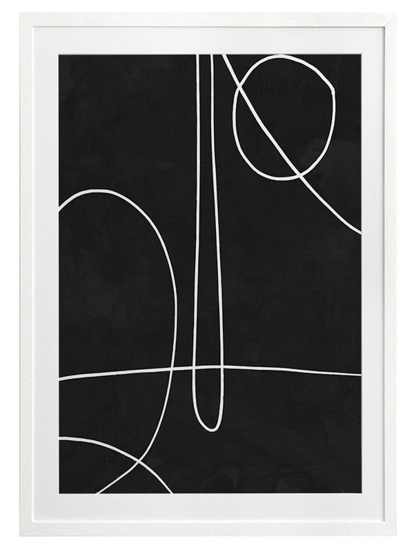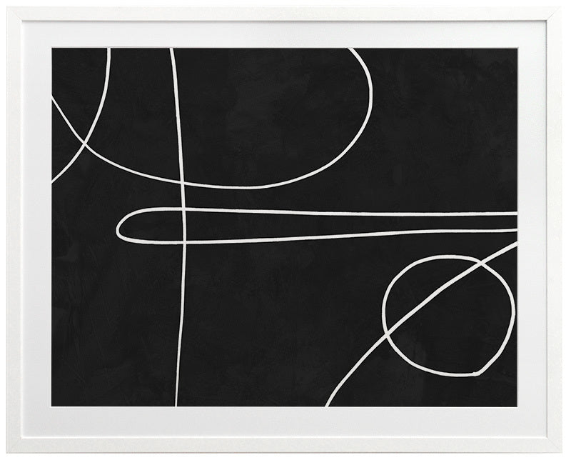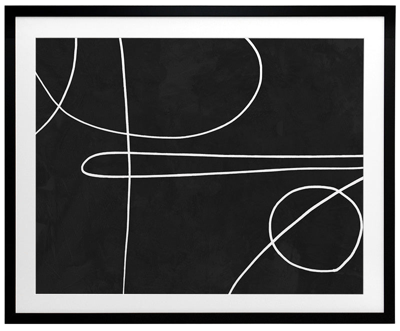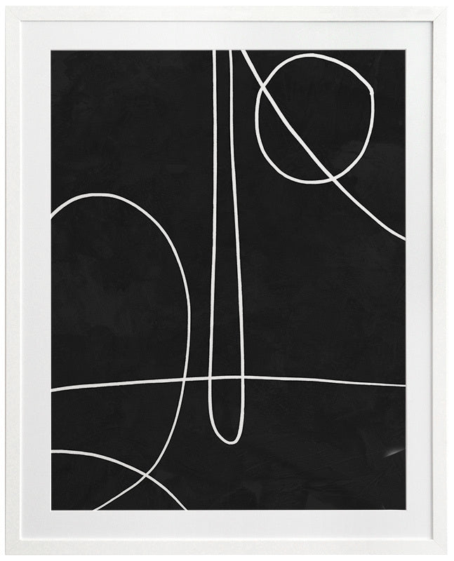 Treble Framed Print: A clean, minimalistic artwork featuring thin overlapping lines on a black background. Can be displayed individually, or as a set with Apex and Isometric. 2018 AUTUMN/WINTER COLLECTION: CONTINUUM