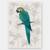 Tropical Macaw - An incredibly detailed Blue-and-Yellow Macaw sits against a tropical palm tree motif.