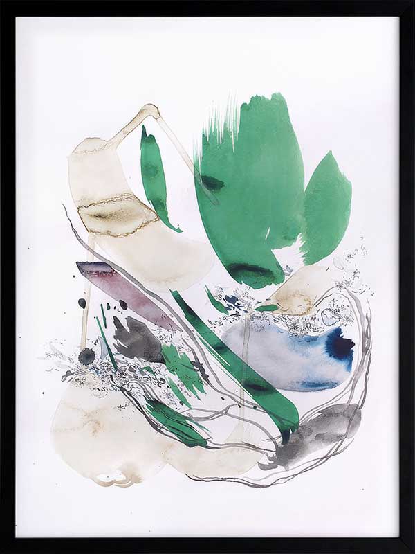 Unanticipated Framed Art Print - Unanticipated by Christina Kwan is an abstract minimalistic artwork that elegantly showcases bold, expressive abstract forms in greens, blues, and soft neutrals. This piece combines spontaneity with sophisticated composition, ideal for contemporary interiors craving modern style. This abstract wall art effortlessly adds visual interest, refined colour, and graceful movement to your decor.