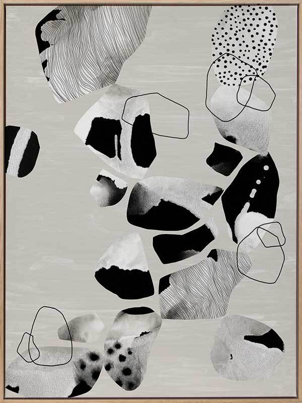 Under Pressure I Canvas Art Print: A bold abstract artwork that overlays black, white and grey patterns and textures in a cascade of organic, rock like shapes. Pairs with Under Pressure II. 2020 AUTUMN/WINTER COLLECTION: REVERIE