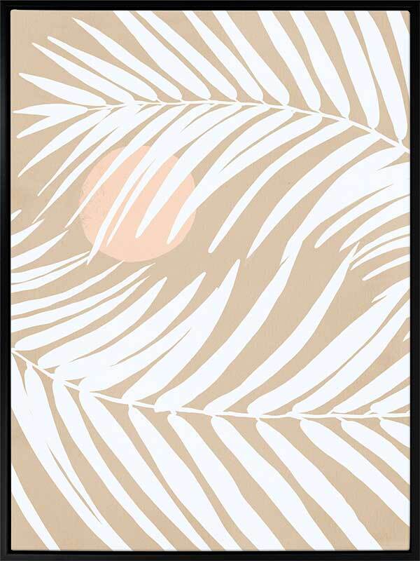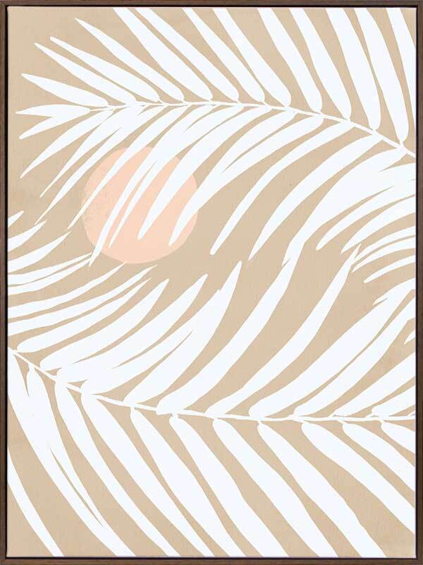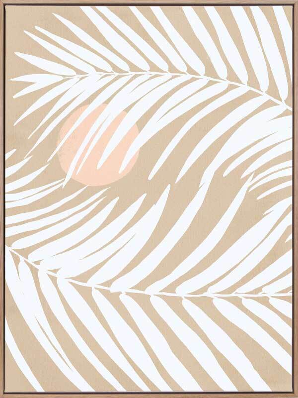 Under the Moonlight II Sand Canvas Art Print - With a calm and understated vibe, this piece uses simple imagery with minimal lines and flat colours to bring an airy, tropical feel to your space. A versatile palette of sandy beige, soft white and a touch of muted pink makes this easy to incorporate into any interior style.