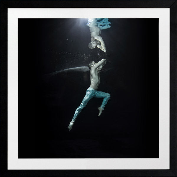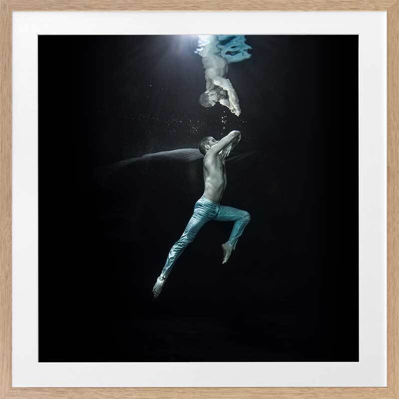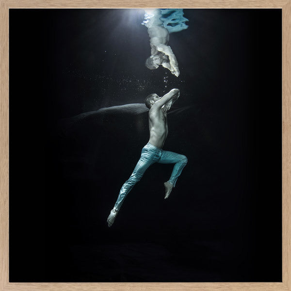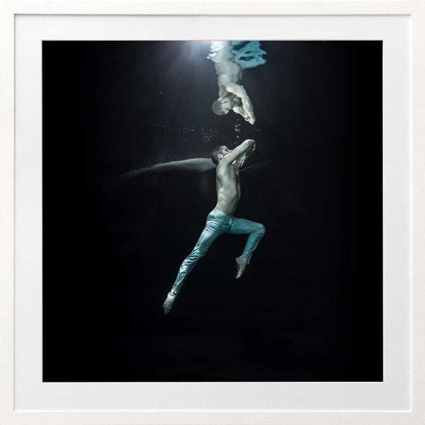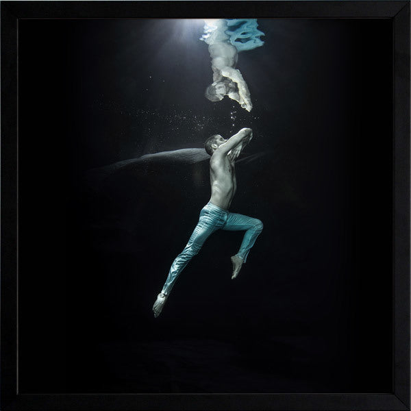 Underwater Dancer I Framed Print: A striking underwater photograph of a male dancer moving towards the surface. Pairs with Underwater Dancer II. 2019 AUTUMN/WINTER COLLECTION: ODYSSEY