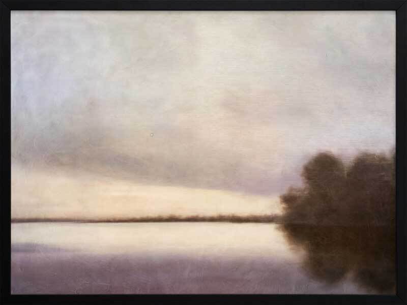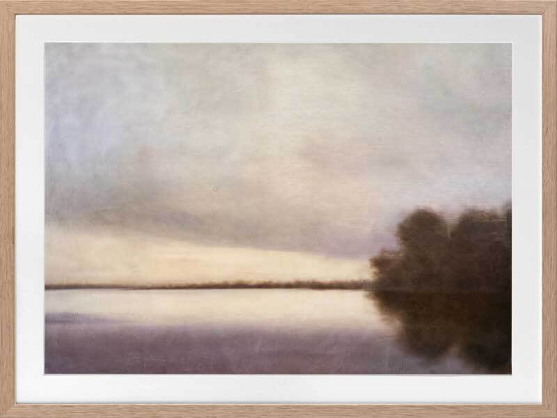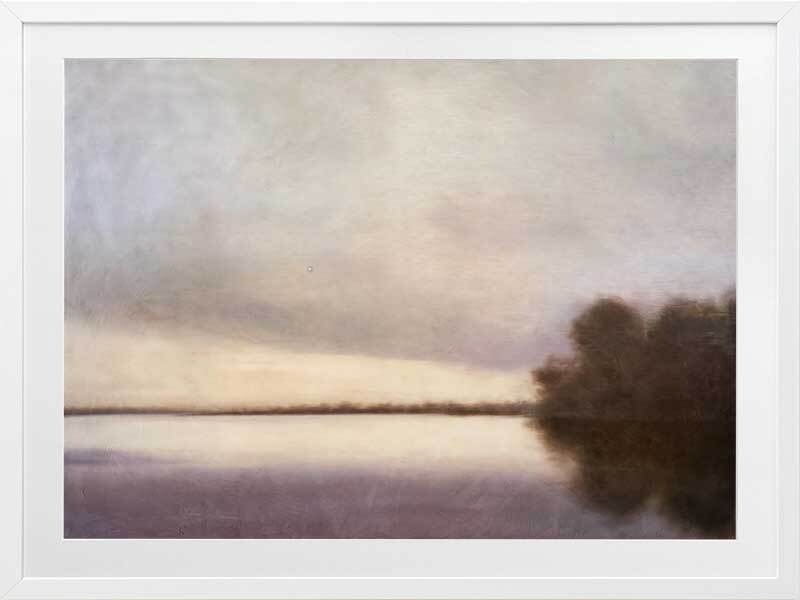 Reflections at Dawn II Framed Art Print - Immerse yourself in the tranquil beauty of this Darren Palmer art print, perfect for adding a serene touch to your living room or bedroom. This piece features a misty lakeside scene, with gentle shades of blue and grey blending seamlessly to create a soft, dreamlike atmosphere, making it an ideal addition to any interior design style. Enhance your home decor with this evocative artwork, bringing a peaceful, country charm to any space.