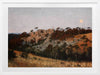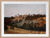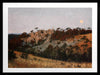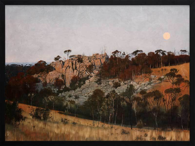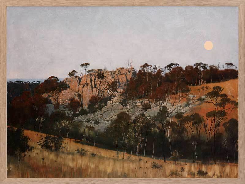 Outback Evenings Framed Art Print - This artwork by Darren Palmer captures the quiet allure of an Australian landscape bathed in the soft glow of the setting sun. The rich, earthy tones and intricate details of the rugged terrain and trees evoke a sense of tranquillity and timelessness. This art print is perfect for infusing your bedroom or living room with a touch of nature's splendour, seamlessly complementing various interior design styles. Its presence enhances your home decor, creating a picturesque and peaceful atmosphere.