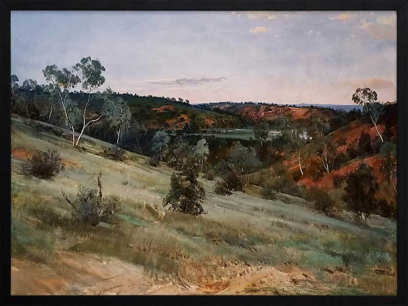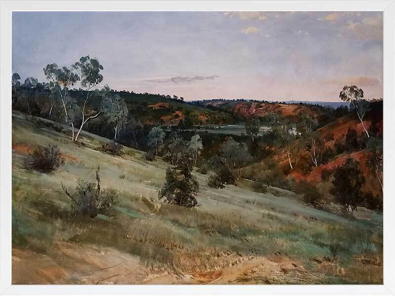 Idyllic Framed Art Print - Bask in the serene beauty of this Darren Palmer landscape artwork, where rolling hills and lush greenery stretch under a tranquil sky. The rich, earthy tones of green and brown evoke a sense of peaceful solitude, making it a perfect addition to your bedroom or living room. This art print complements various interior design styles, infusing your space with a touch of rustic charm and natural elegance. Ideal for creating a calming, picturesque atmosphere in your home decor.