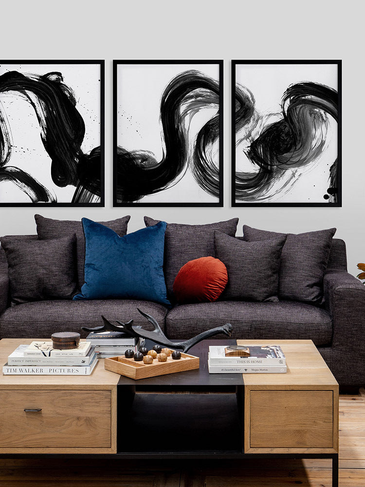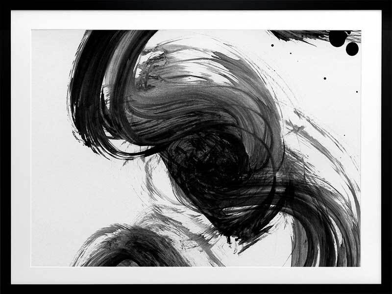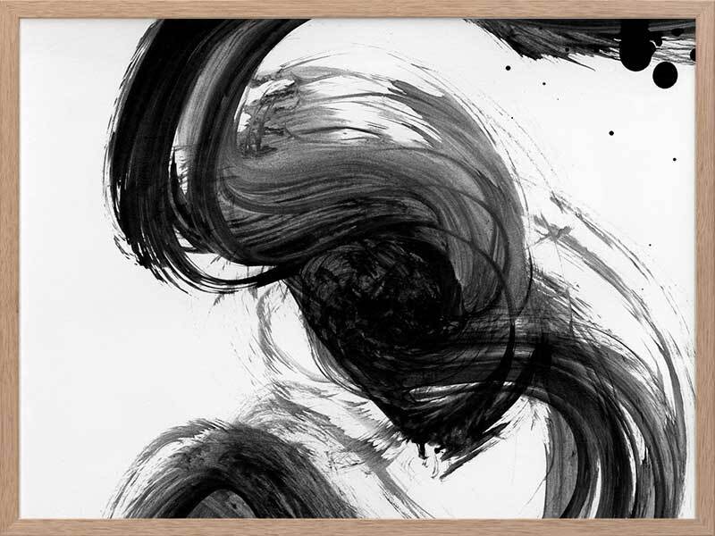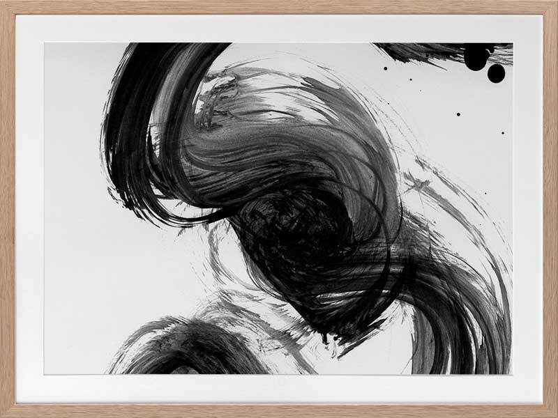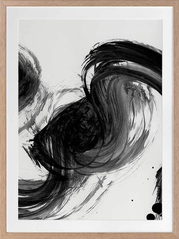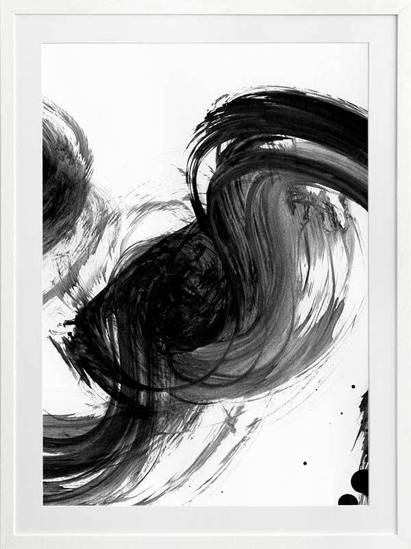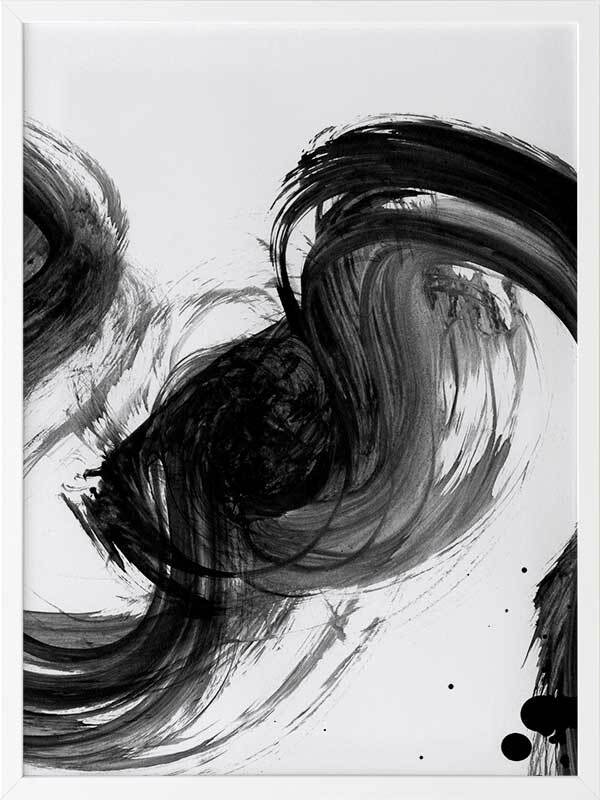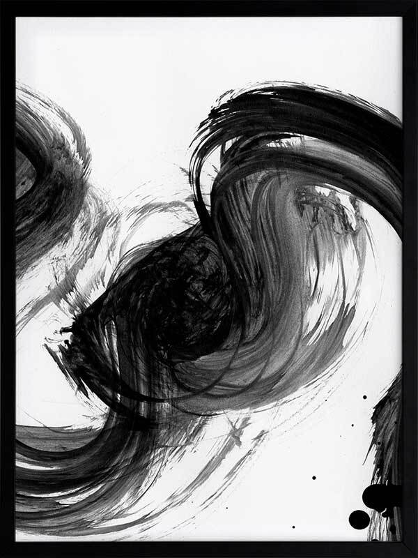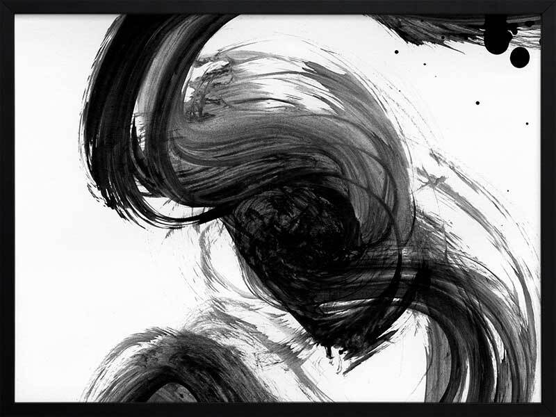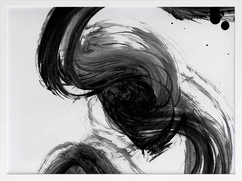 Velodrome III Framed Print: A minimalist art print featuring a bold, black paint stroke across a stark white background. Pairs with Velodrome I and II. 2020 AUTUMN/WINTER COLLECTION: REVERIE