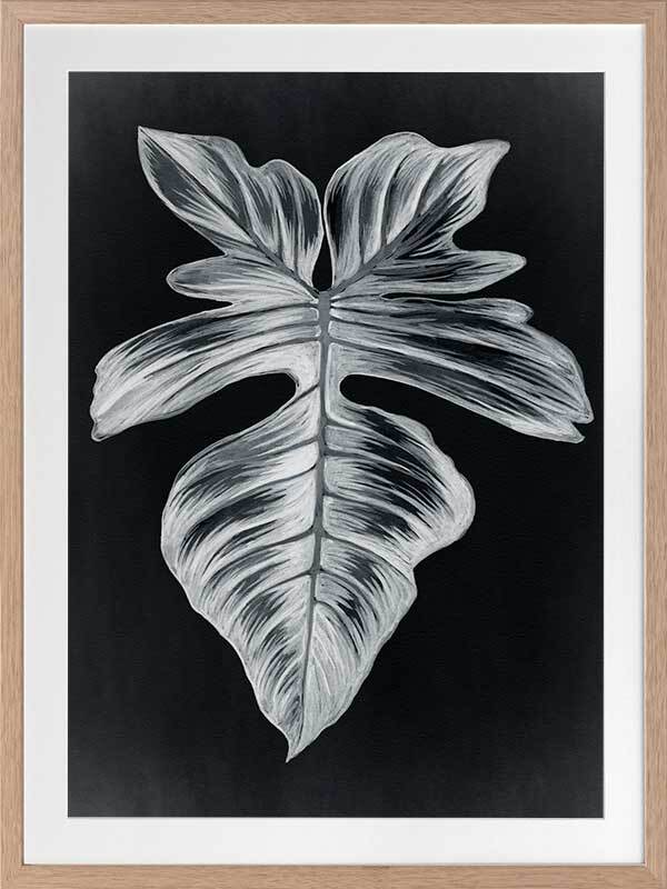 Verdure III Midnight Framed Print: Black and white ink study of lush tropical foliage, ideally displayed as a collection with Verdure I & II. 2016 SPRING/SUMMER COLLECTION: ELEMENT