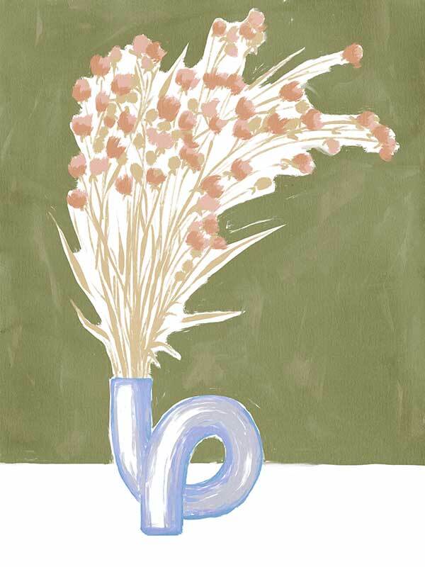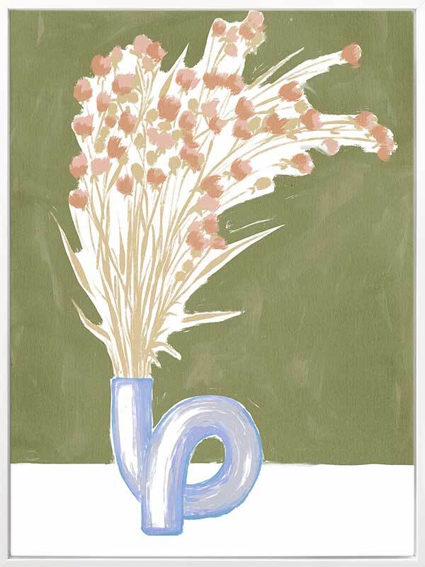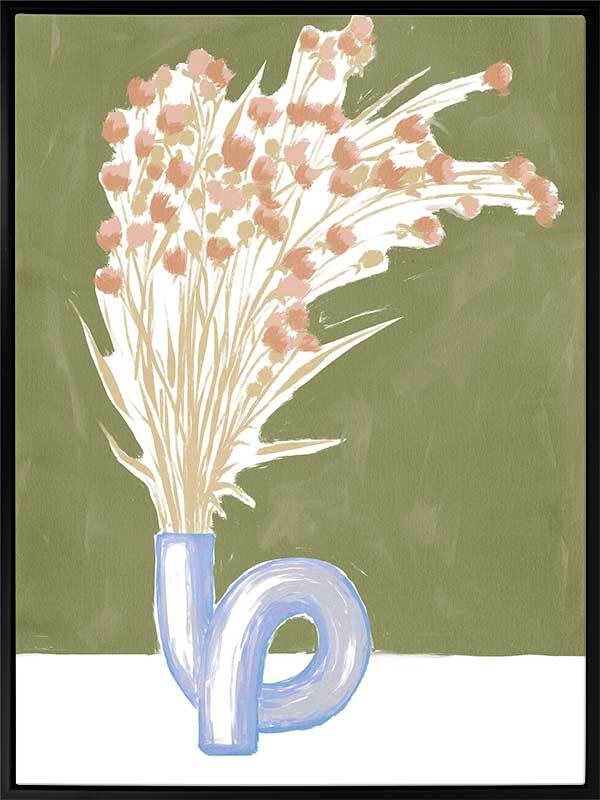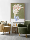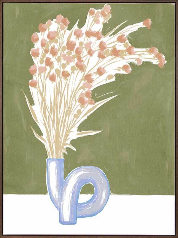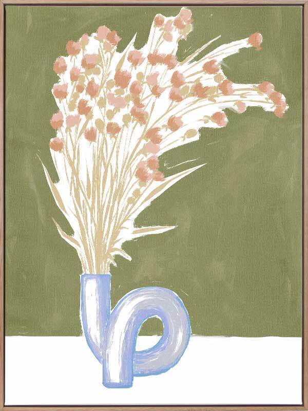 Villa Bloom II Canvas Art Print - Walking into your vacay villa, you're instantly met with a blooming bouquet of fresh flowers, bursting with colour and delight. Featuring our statement Wander Glass Vessel with its smooth curves, a khaki coloured background brings the muted pink, yellow and blue shades forward for an understated look.