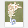 Villa Bloom II Unframed Art Print - Walking into your vacay villa, you're instantly met with a blooming bouquet of fresh flowers, bursting with colour and delight. Featuring our statement Wander Glass Vessel with its smooth curves, a khaki coloured background brings the muted pink, yellow and blue shades forward for an understated look.
