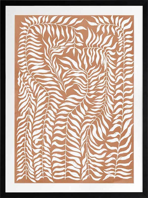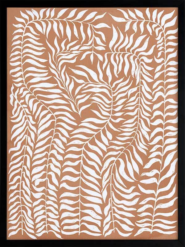 Vineyard Bronze Framed Art Print - Transport your space to the vineyards of the South of France, with wide open landscapes and rolling hills, the sweet smell of grapes in the air. With a repeat pattern of vines and monotone pattern of warm brown and creamy white, this piece will add a dynamic flare to any space.