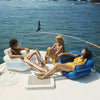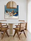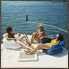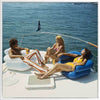 Vintage Boat Cruise Canvas Art Print - Give a nod to the 70's with this uber chic vintage photograph featuring a man and two women relaxing on a private boat with the calming water behind them. The colour palette for this artwork is multicoloured with the main colours being blue from the ocean, as well as yellow and orange tones from the vintage clothing.