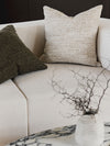 Virella Square Green Cushion 50X50cm - Elevate any space with this luxury textured cushion by Darren Palmer, crafted with high-quality boucle material. Perfect as a bedroom cushion or living room cushion, the deep moss green shades with charcoal undertones bring a warm, timeless feel. An ideal, quality cushion for any interior design style, this piece is designed for lasting comfort.