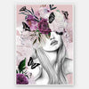Virgo Unframed Art Print - A feminine portrait piece of sister Virgo, as part of the Zodiac Sisters series. Using a delicate colour palette of blush pinks, dark green, and hints of soft blue, this piece emulates the tender, affectionate nature of Virgos. Hidden behind the blooming flower display is a powerful, compassionate woman, caught in a pensive moment, illustrated using a soft greyscale palette.