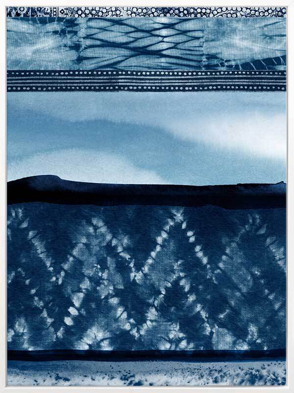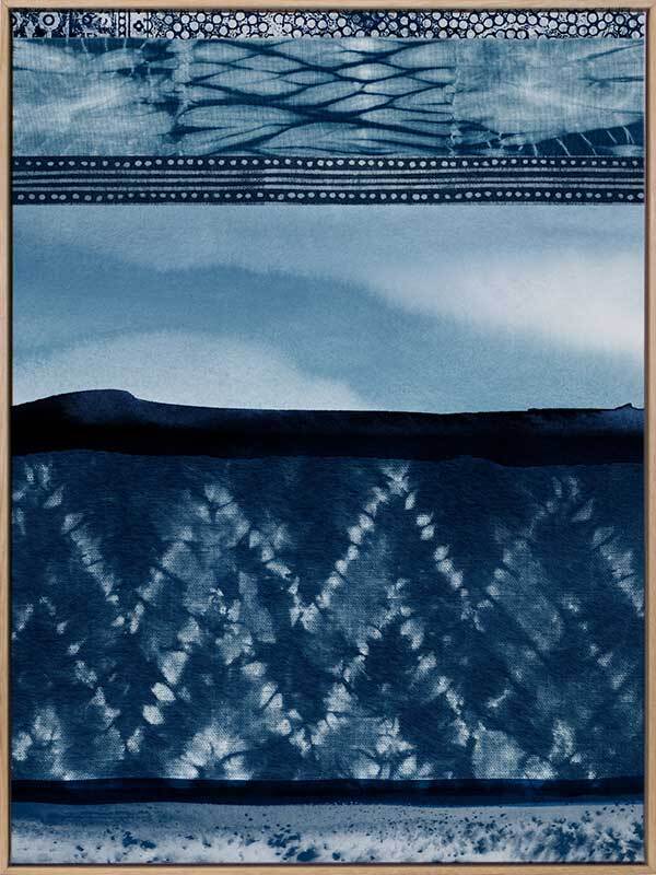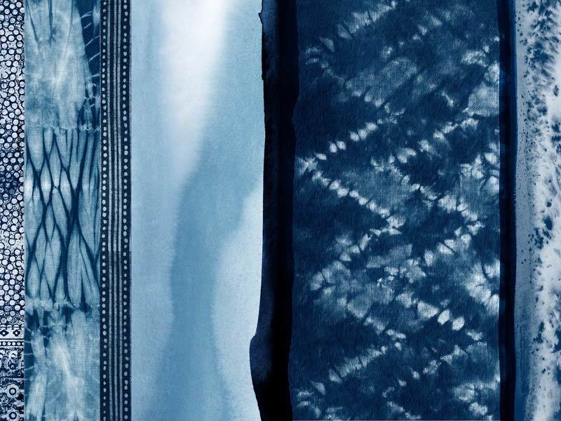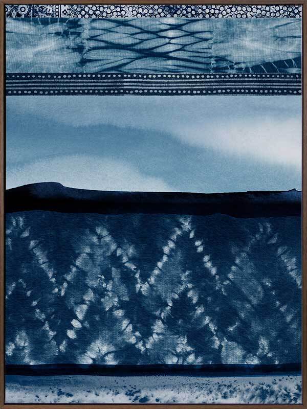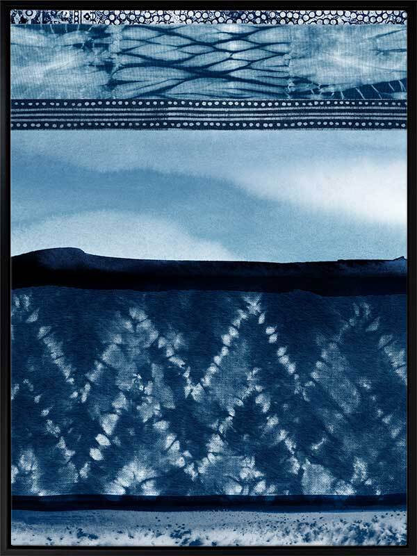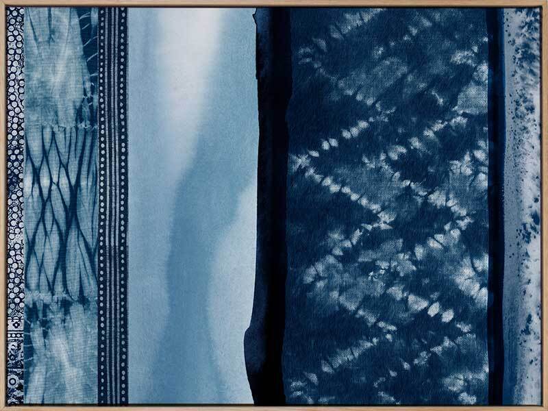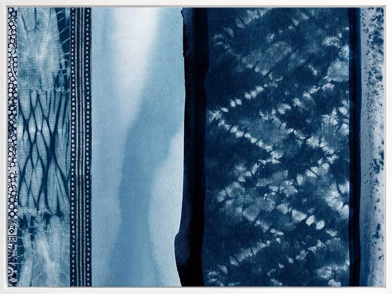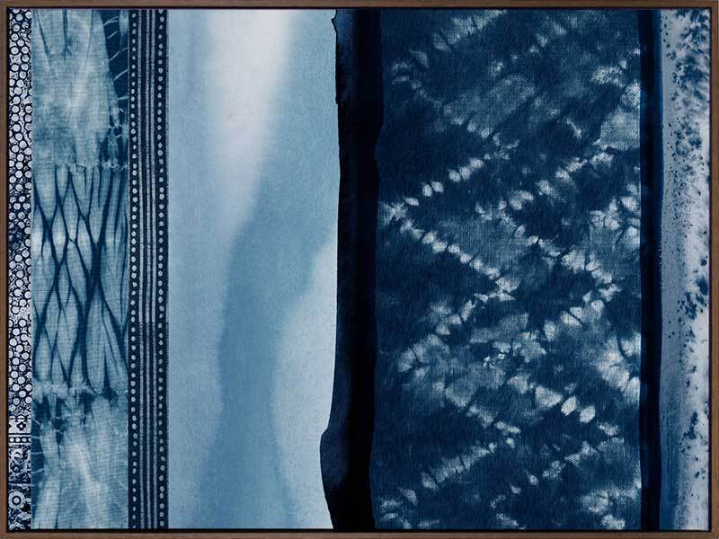 Wabi-Sabi Indigo Canvas Art Print: A shibori-inspired artwork featuring beautifully textured patterned indigo panels. Pairs with Haiku Indigo. 2018 SPRING/SUMMER COLLECTION: REMINISCE