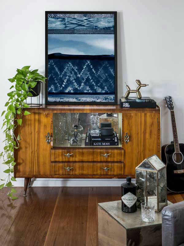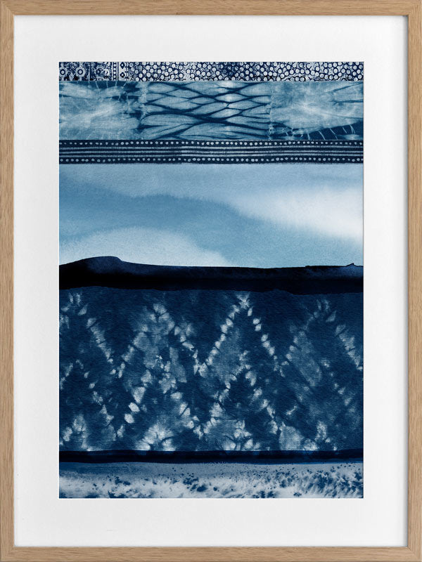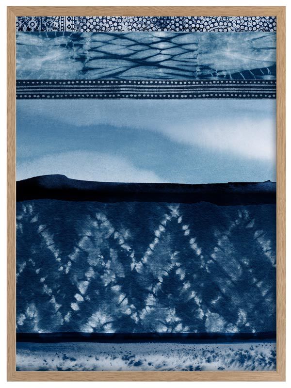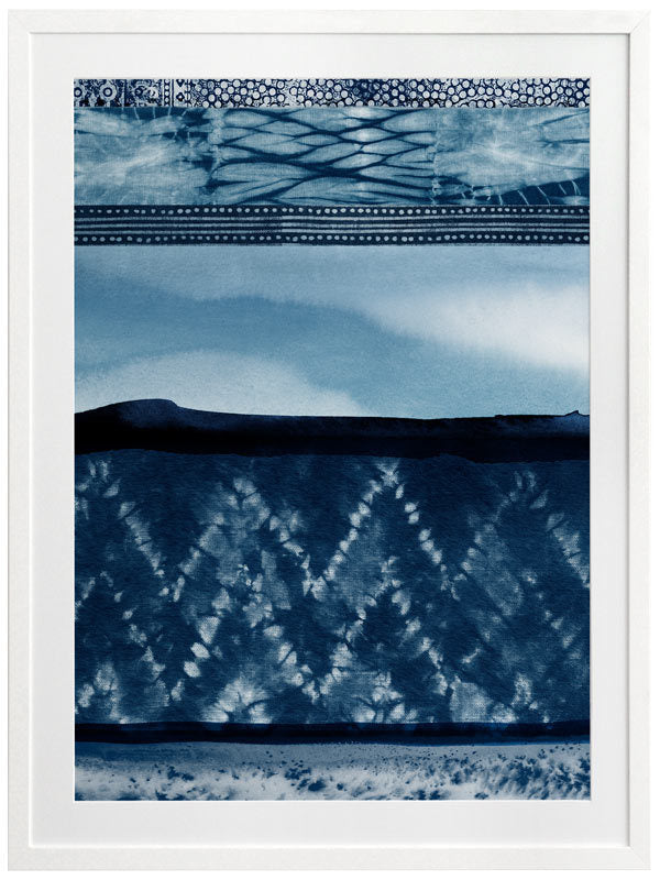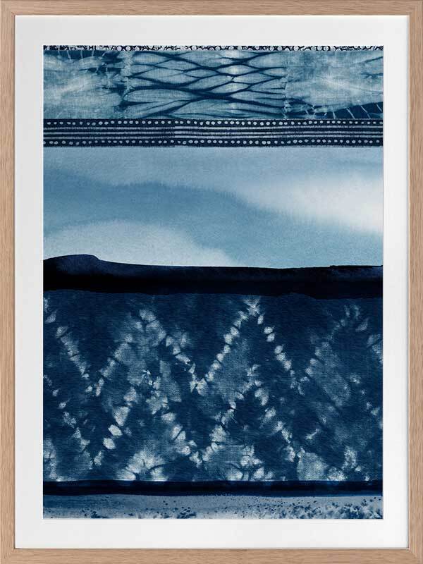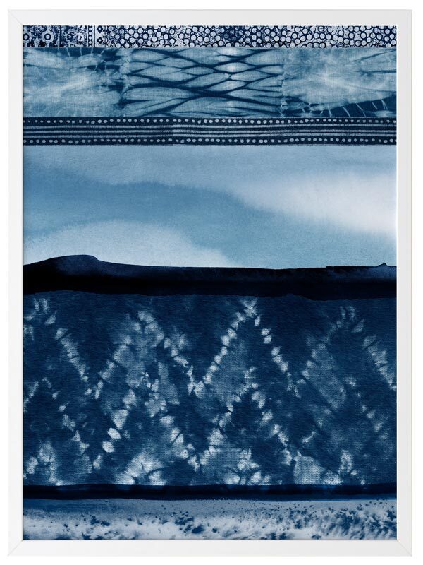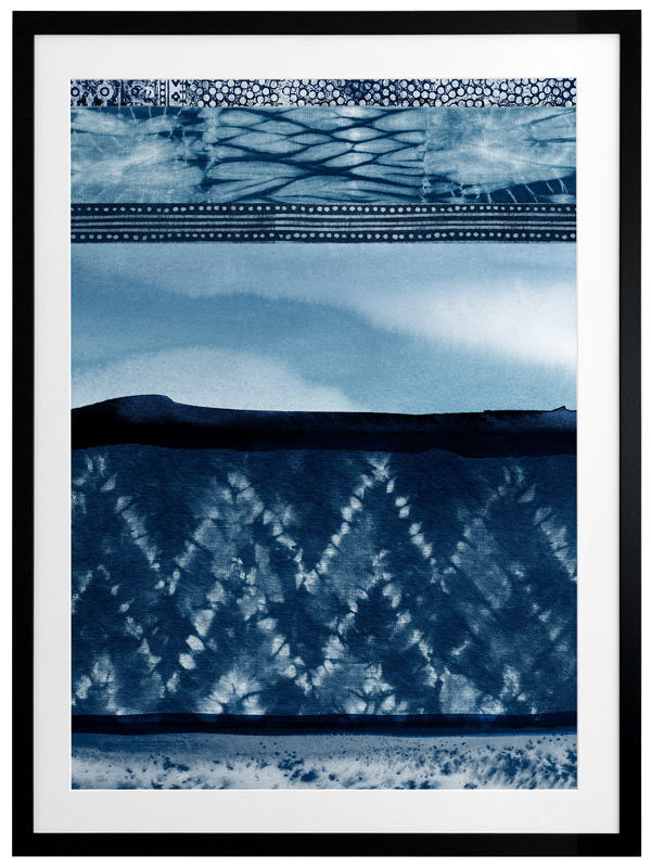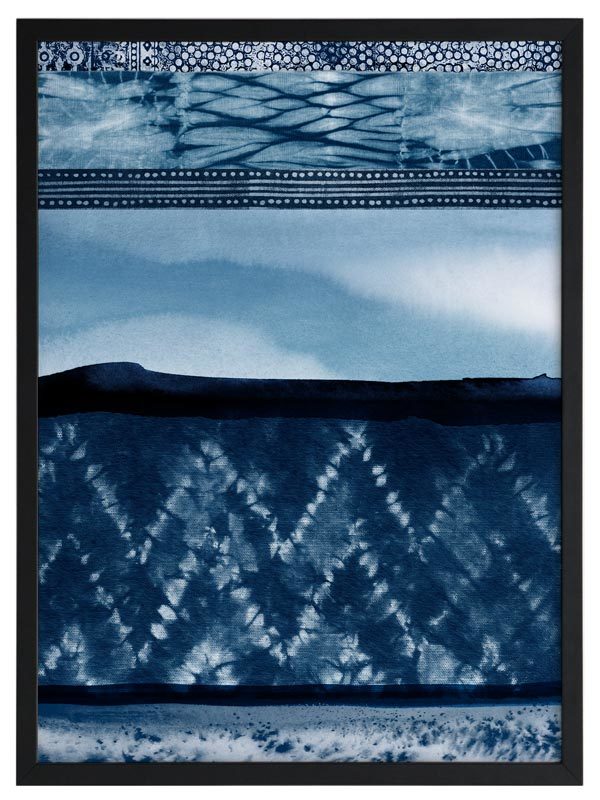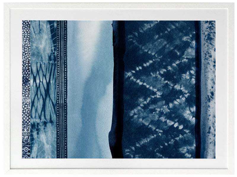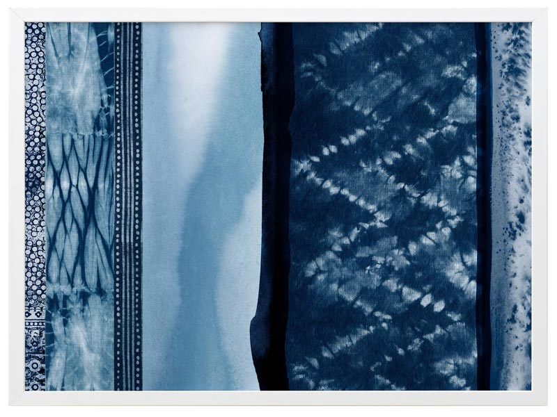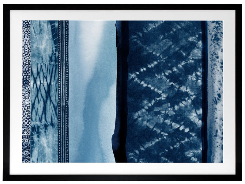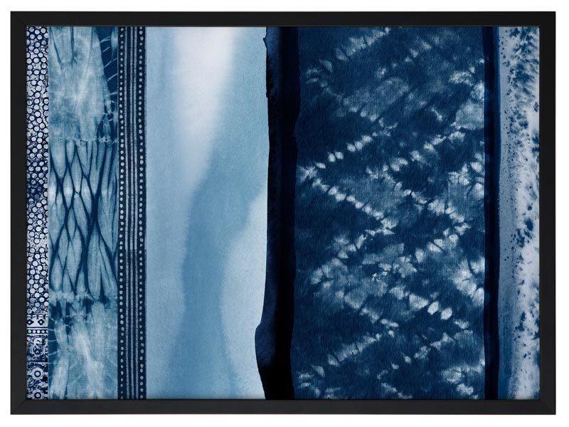 Wabi-Sabi Indigo Framed Print: A shibori-inspired artwork featuring beautifully textured patterned indigo panels. Pairs with Haiku Indigo. 2018 SPRING/SUMMER COLLECTION: REMINISCE