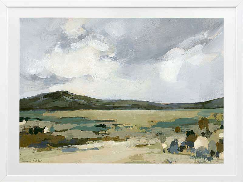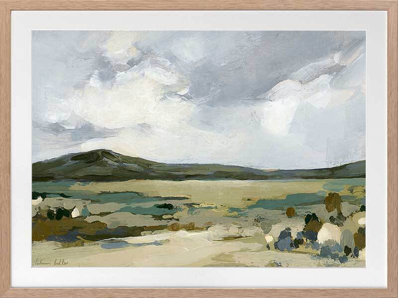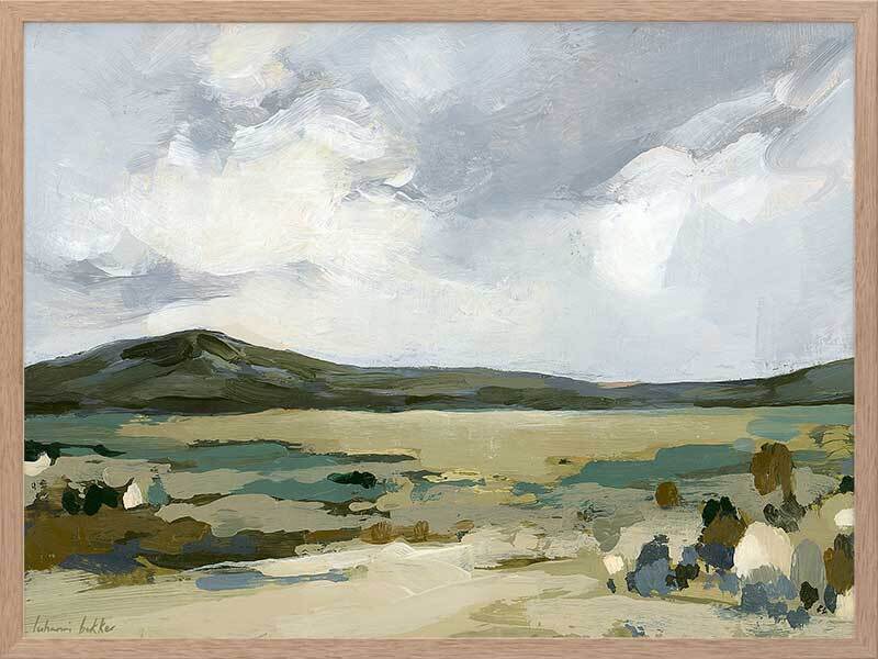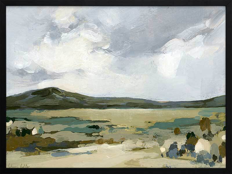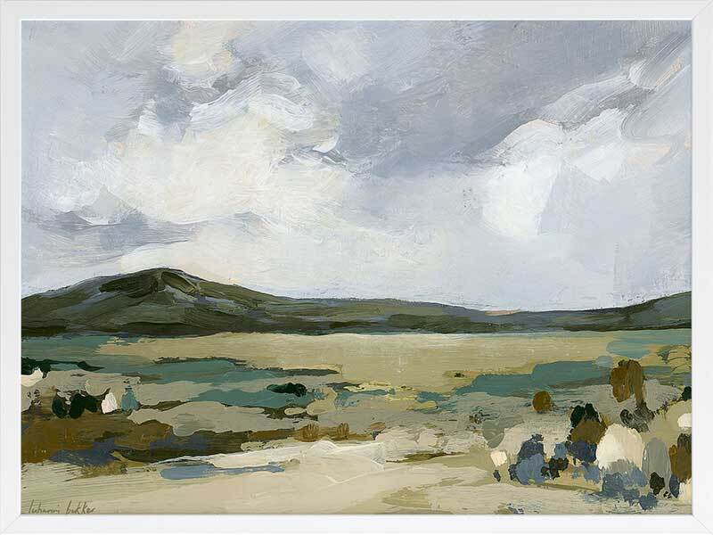 Walk With Me Framed Art Print - Leaning into cool undertones, this piece brings a soothing feel to any space with its visible brush strokes and peaceful skyline, perfect for bringing the calm to any room. Light and dark grey tones in the sky complement khaki green shades and other neutrals in the foreground.
