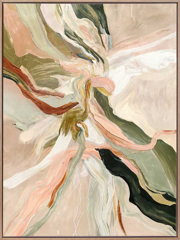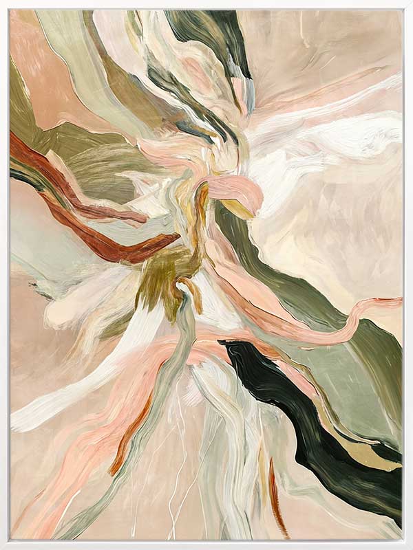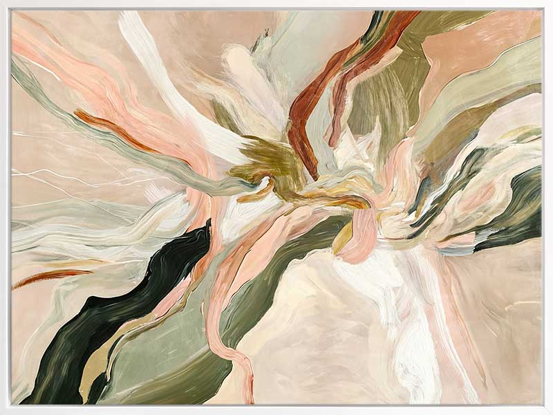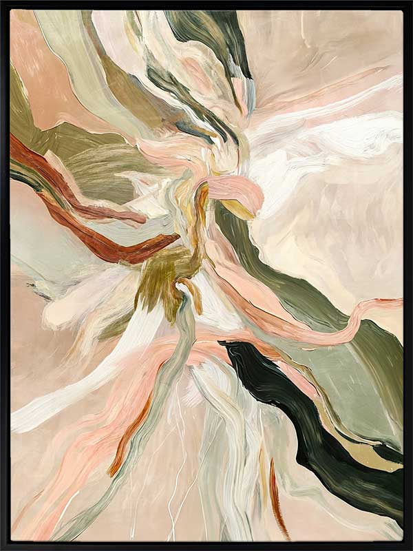 Warm Memories I Canvas Art Print - Evoking fluid elegance and warmth, this art print beautifully blends abstract movement with delicate earthy tones of soft greens, blush pinks, terracotta, and neutrals. This piece creates a harmonious focal point for spaces craving modern art that’s stylish yet soothing. Perfect for contemporary interiors, it captures nostalgia and timeless sophistication.