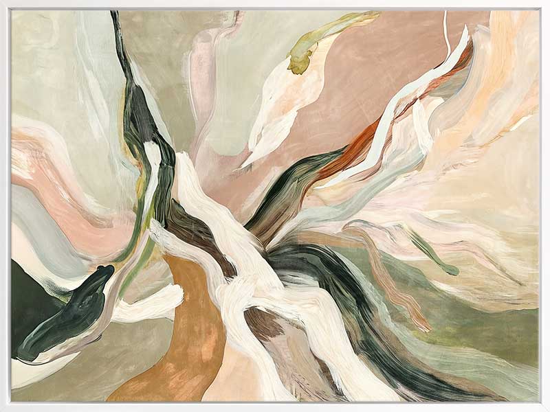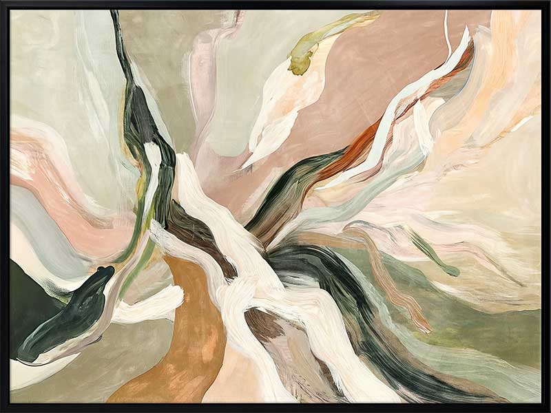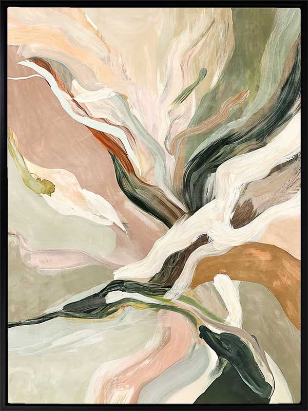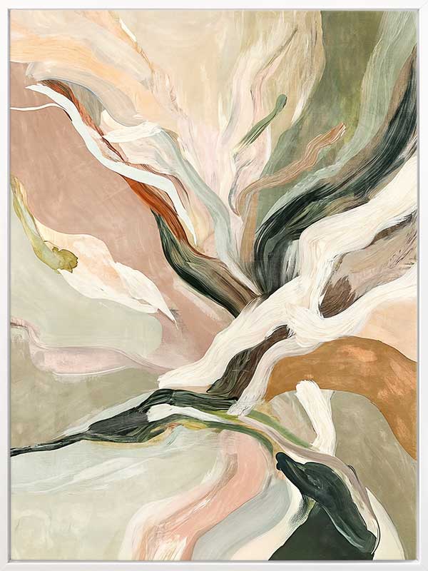 Warm Memories II Canvas Art Print - Evoking fluid elegance and warmth, this art print beautifully blends abstract movement with delicate earthy tones of soft greens, blush pinks, terracotta, and neutrals. This piece creates a harmonious focal point for spaces craving modern art that’s stylish yet soothing. Perfect for contemporary interiors, it captures nostalgia and timeless sophistication.