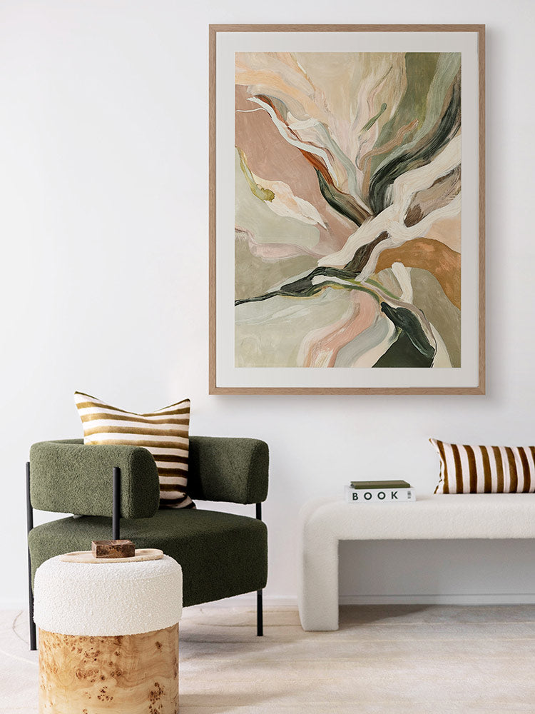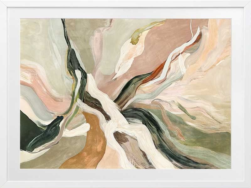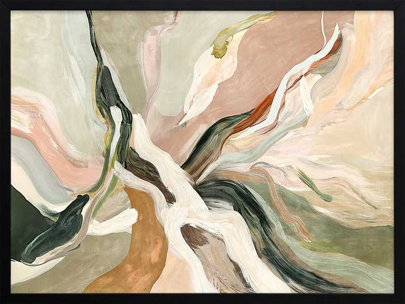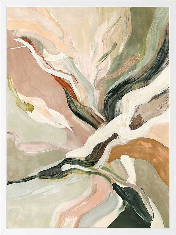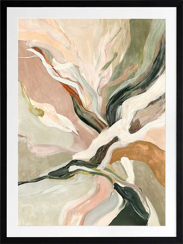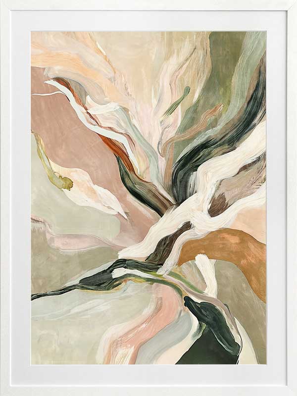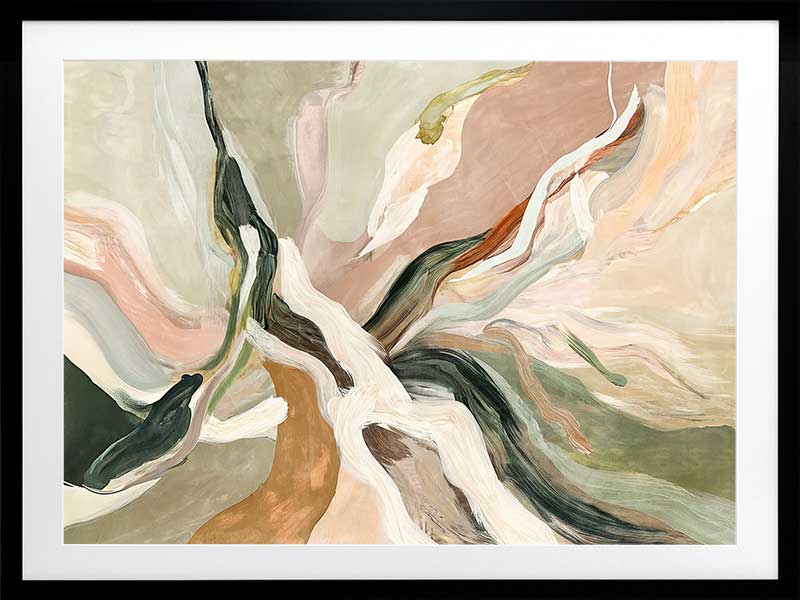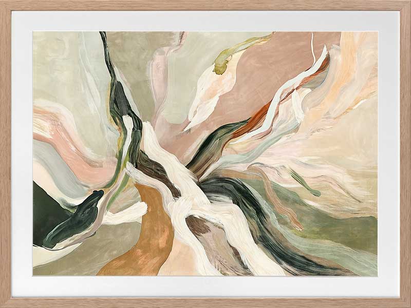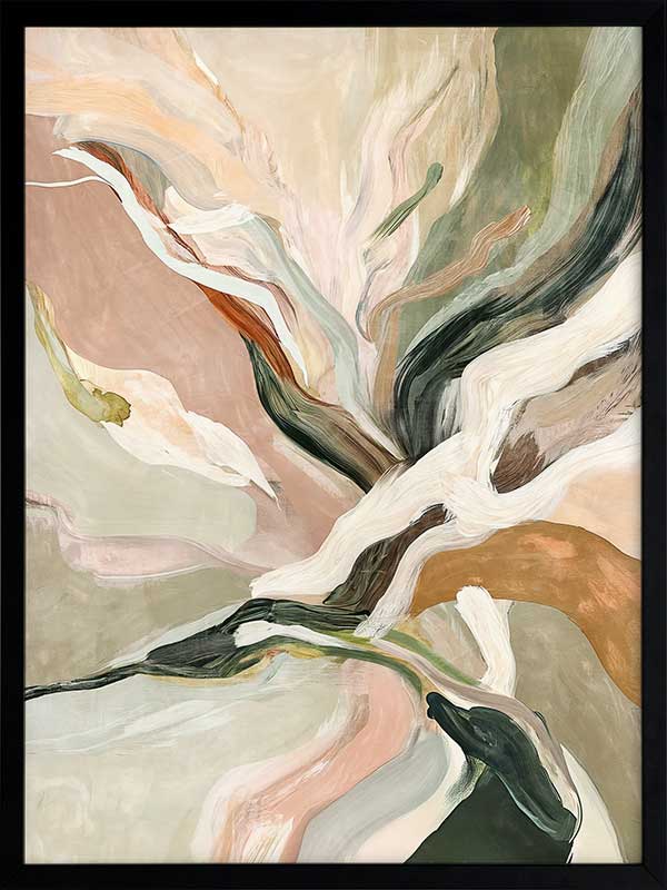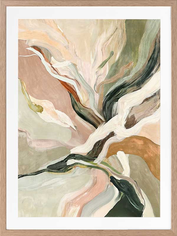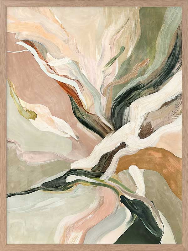 Warm Memories II Framed Art Print - Evoking fluid elegance and warmth, this art print beautifully blends abstract movement with delicate earthy tones of soft greens, blush pinks, terracotta, and neutrals. This piece creates a harmonious focal point for spaces craving modern art that’s stylish yet soothing. Perfect for contemporary interiors, it captures nostalgia and timeless sophistication.