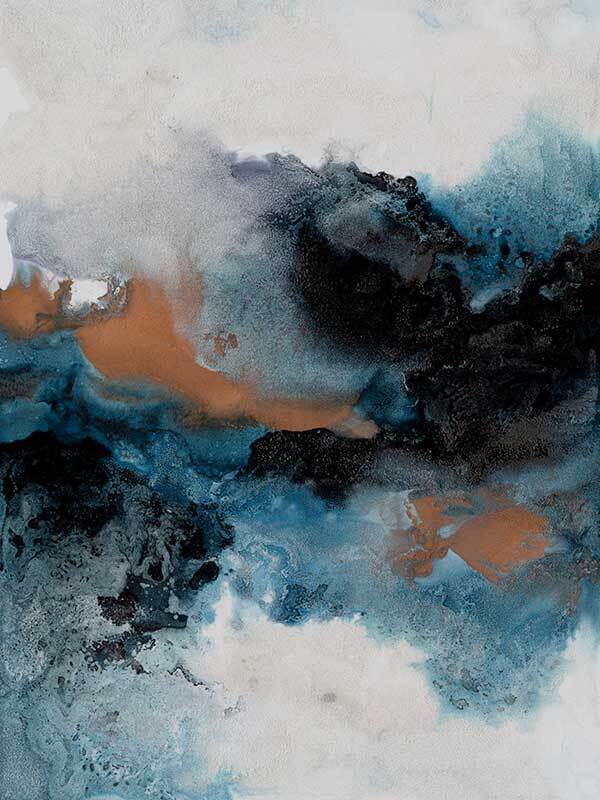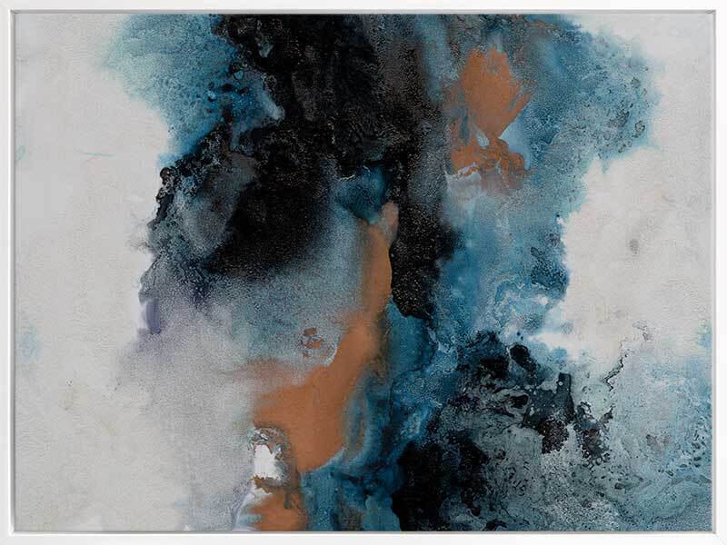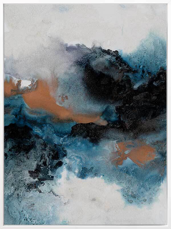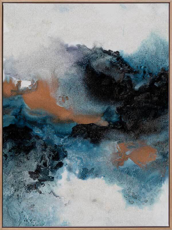 Water and Earth I Canvas Art Print - A wonderfully turbulent design that inspires thoughts of crashing waves. The artwork features layers of rich, deep blue tones blended with black and grey and accented with pops of copper. Pairs with Water and Earth II.