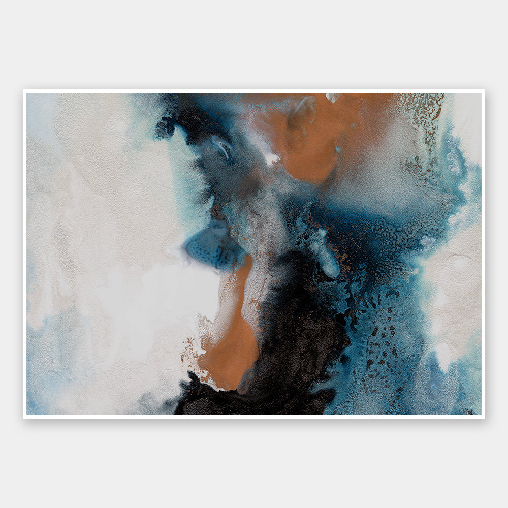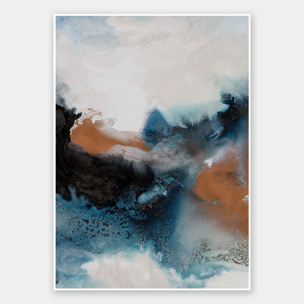 Water and Earth II Unframed Art Print - A wonderfully turbulent design that inspires thoughts of crashing waves. The artwork features layers of rich, deep blue tones blended with black and grey and accented with pops of copper. Pairs with Water and Earth I.