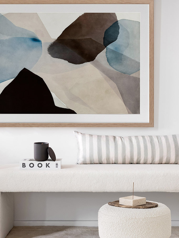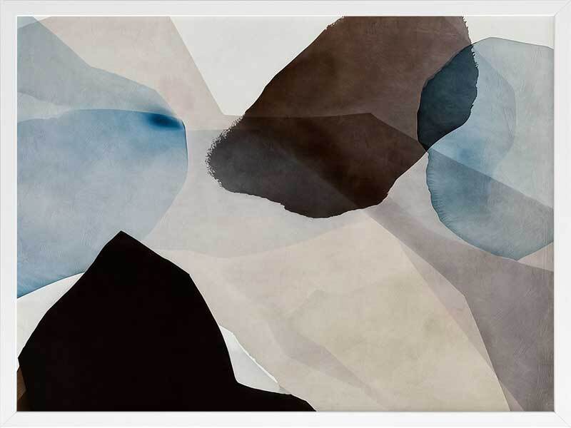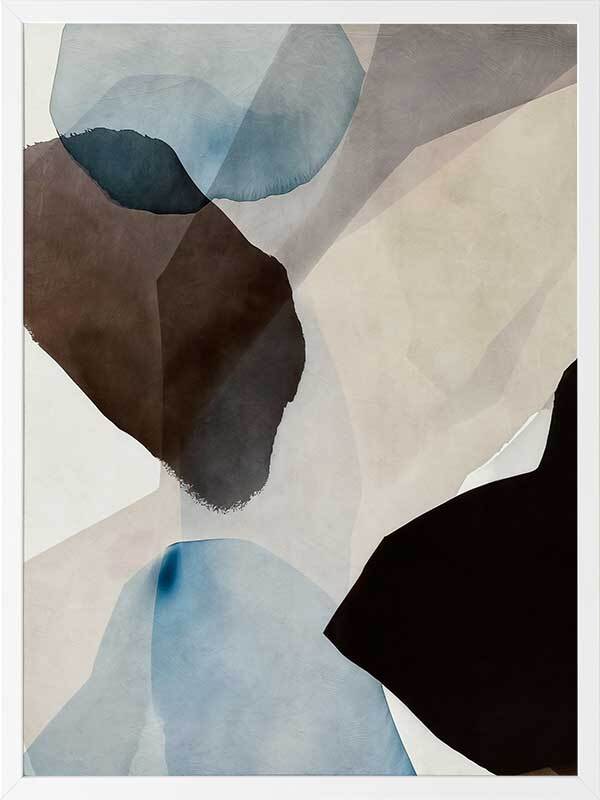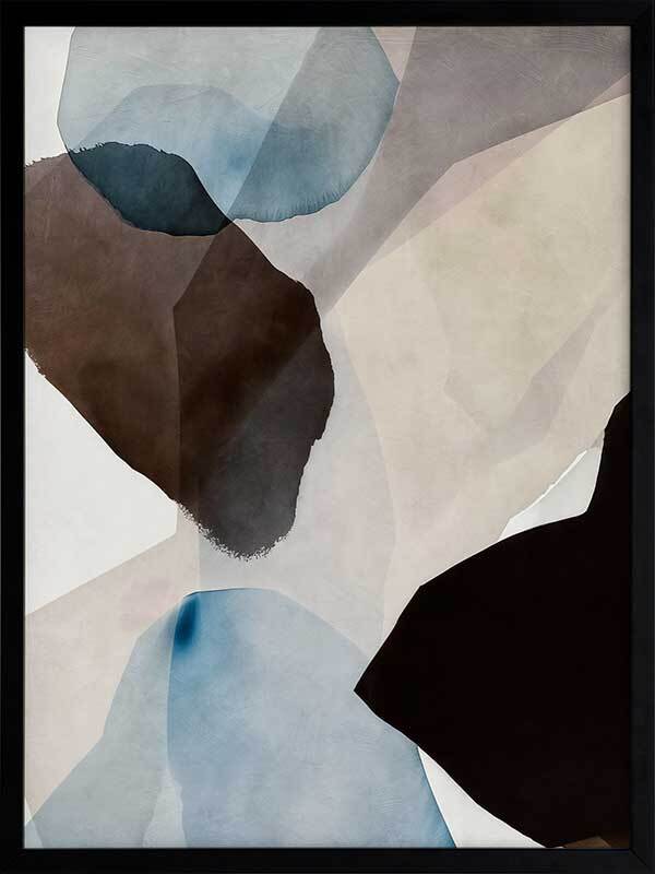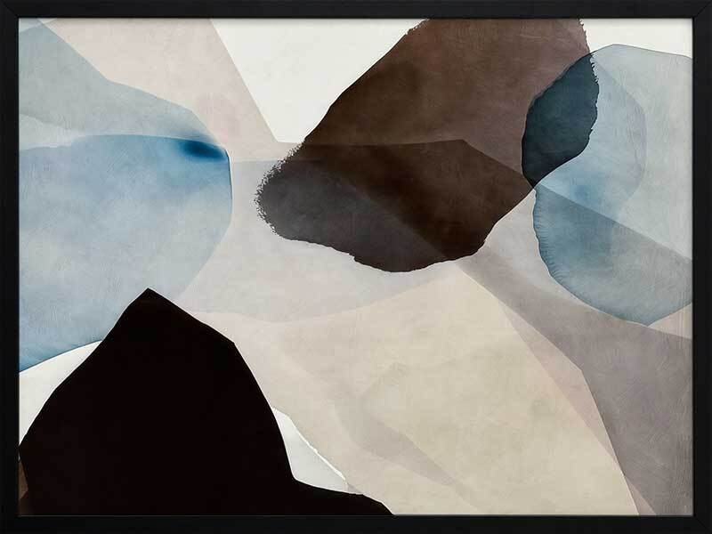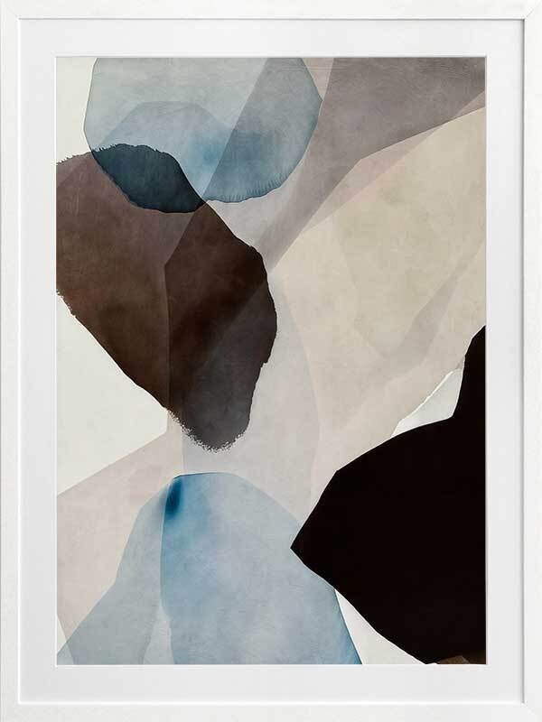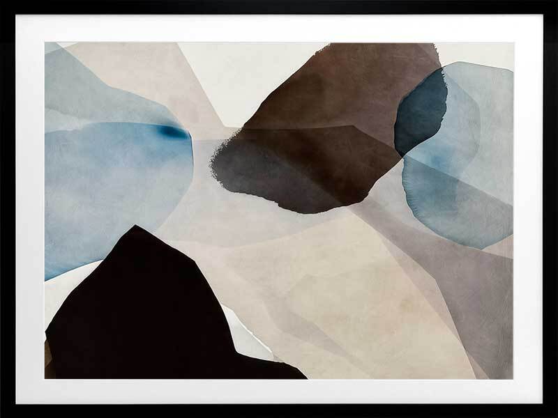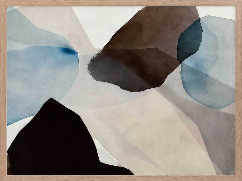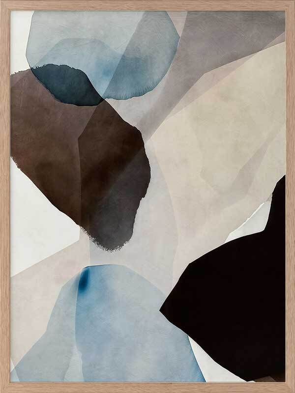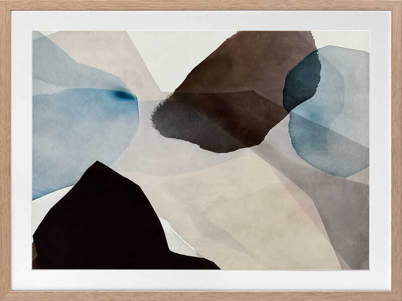 Watercolour Daydreams I Framed Art Print - This abstract artwork, a symphony of watercolour brush strokes, brings a touch of mid-century modern elegance to any space. With its harmonious blend of brown, blue, and neutral hues, and fluid, organic shapes, this wall art evokes a fresh, calming vibe - perfect for enhancing any living room or bedroom.