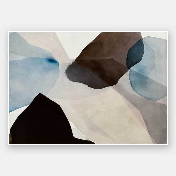 Watercolour Daydreams I Unframed Art Print - This abstract artwork, a symphony of watercolour brush strokes, brings a touch of mid-century modern elegance to any space. With its harmonious blend of brown, blue, and neutral hues, and fluid, organic shapes, this wall art evokes a fresh, calming vibe - perfect for enhancing any living room or bedroom.