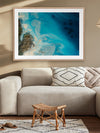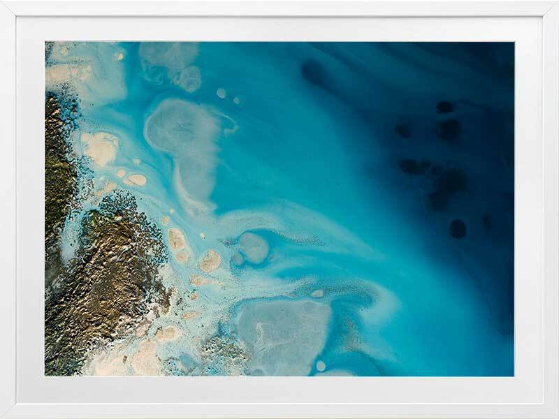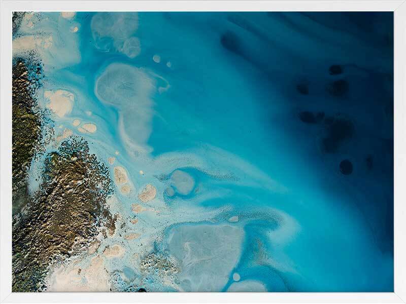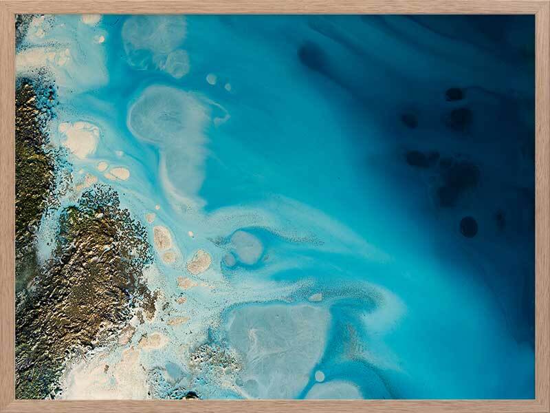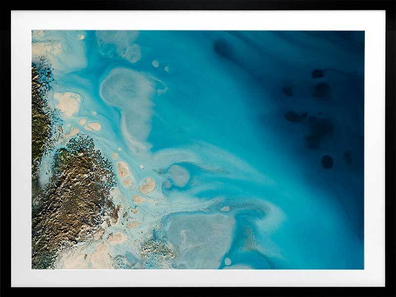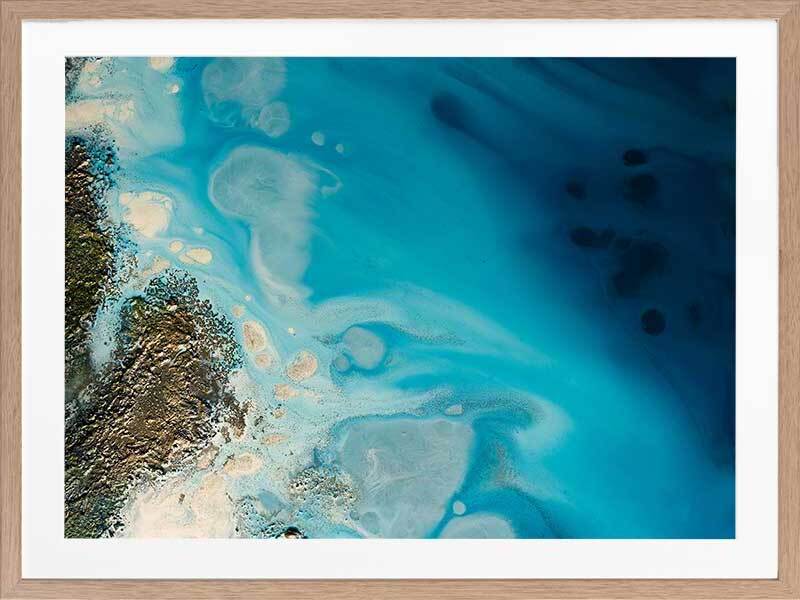 Waterways Framed Art Print - Dreamy and ethereal, this artwork blends deep and light blue tones, and is flecked with gold and cream accents. A beautiful coastal style piece that mimics the swell of the ocean against a coastline. Petra Meikle de Vlas is an Australian Mixed Media Artist whose work is a combination of fine art, abstract and impressionism, and uses many mediums. Petra lives and works at her rainforest property in Cairns, located in Far North Queensland, and enjoys using the nearby Great Barrier Reef as a major source of inspiration and reference for her work. She's an artist who lives and breathes her craft, thrives on breaking the rules, taking risks, and is constantly perfecting techniques and exploring new ideas. Every new piece is a collaboration of many experiments - techniques learned and effects stumbled upon through many years of experience, as she harnesses and manipulates different mediums to create her art.