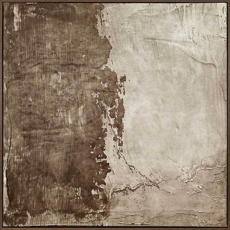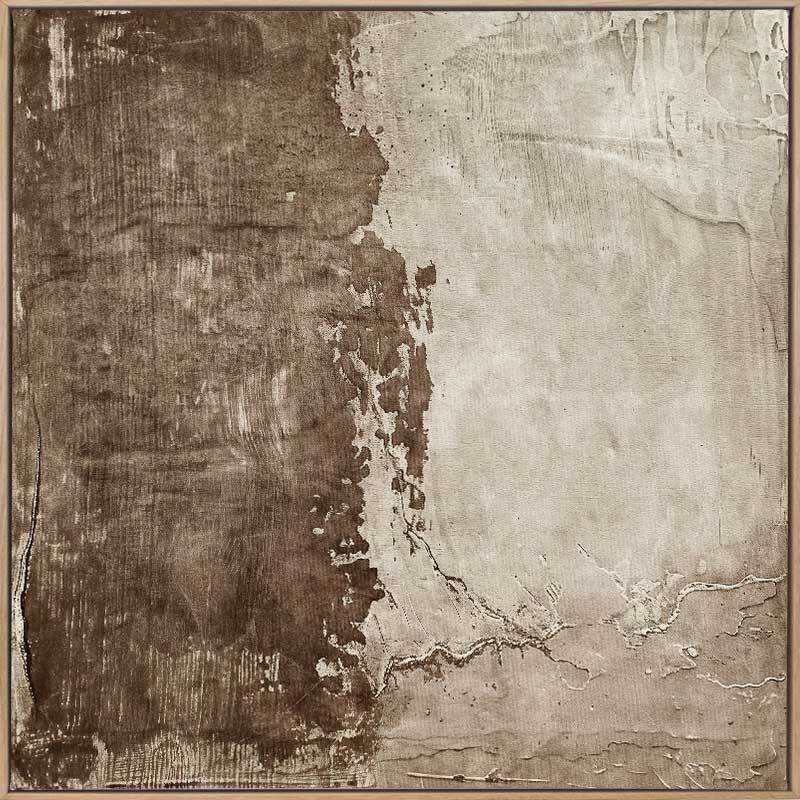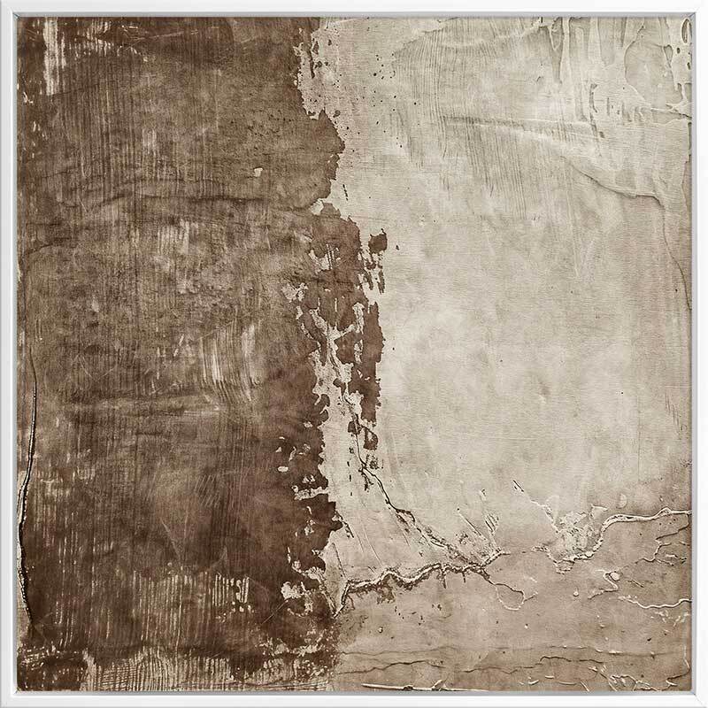 Weathered I Canvas Art Print - Characterised by its textured layers and earthy tones, this piece by Darren Palmer brings a sense of rustic sophistication to your home decor. The juxtaposition of deep browns and soft beiges provide a warm, grounded feeling, making it perfect for any interior design style. Ideal for the bedroom or living room, this art print seamlessly integrates into various settings, adding depth and character.