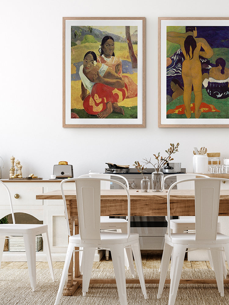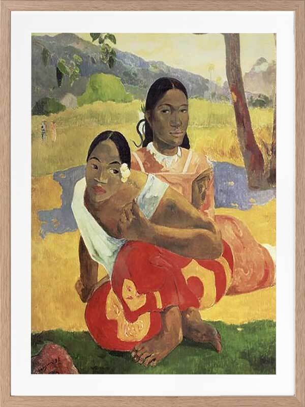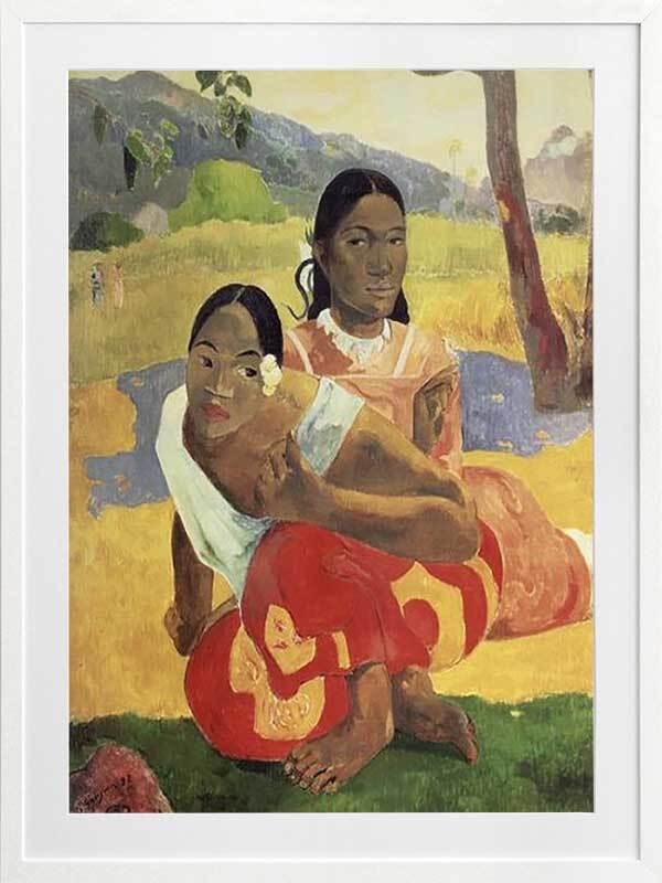 When Will You Marry? Framed Art Print - Drawing inspiration from his travels to tropical Tahiti, this relaxed, tribal Polynesian artwork from French Post-Impressionist artist Paul Gauguin features two Tahitian women sitting in the foreground of a beautiful Tahitian landscape.